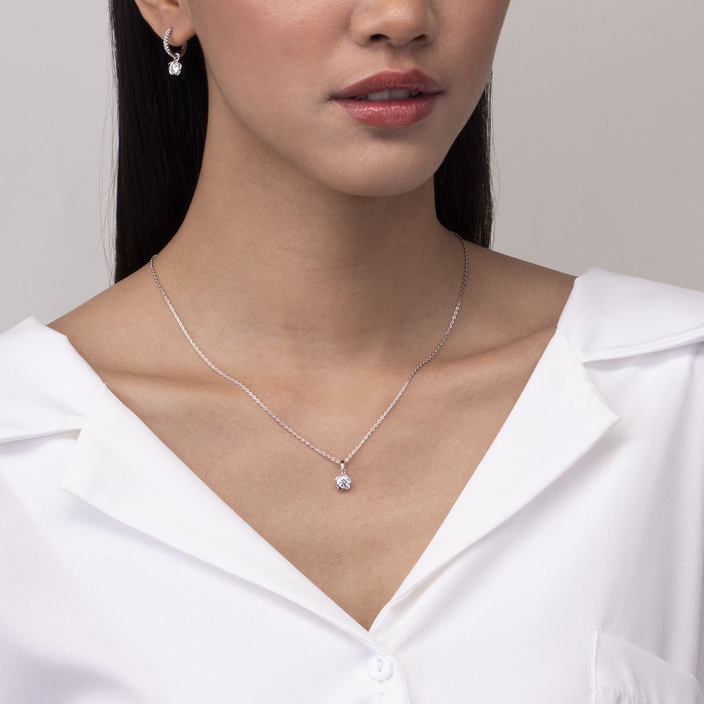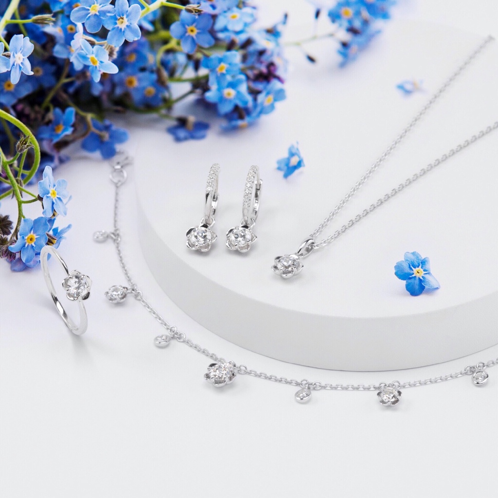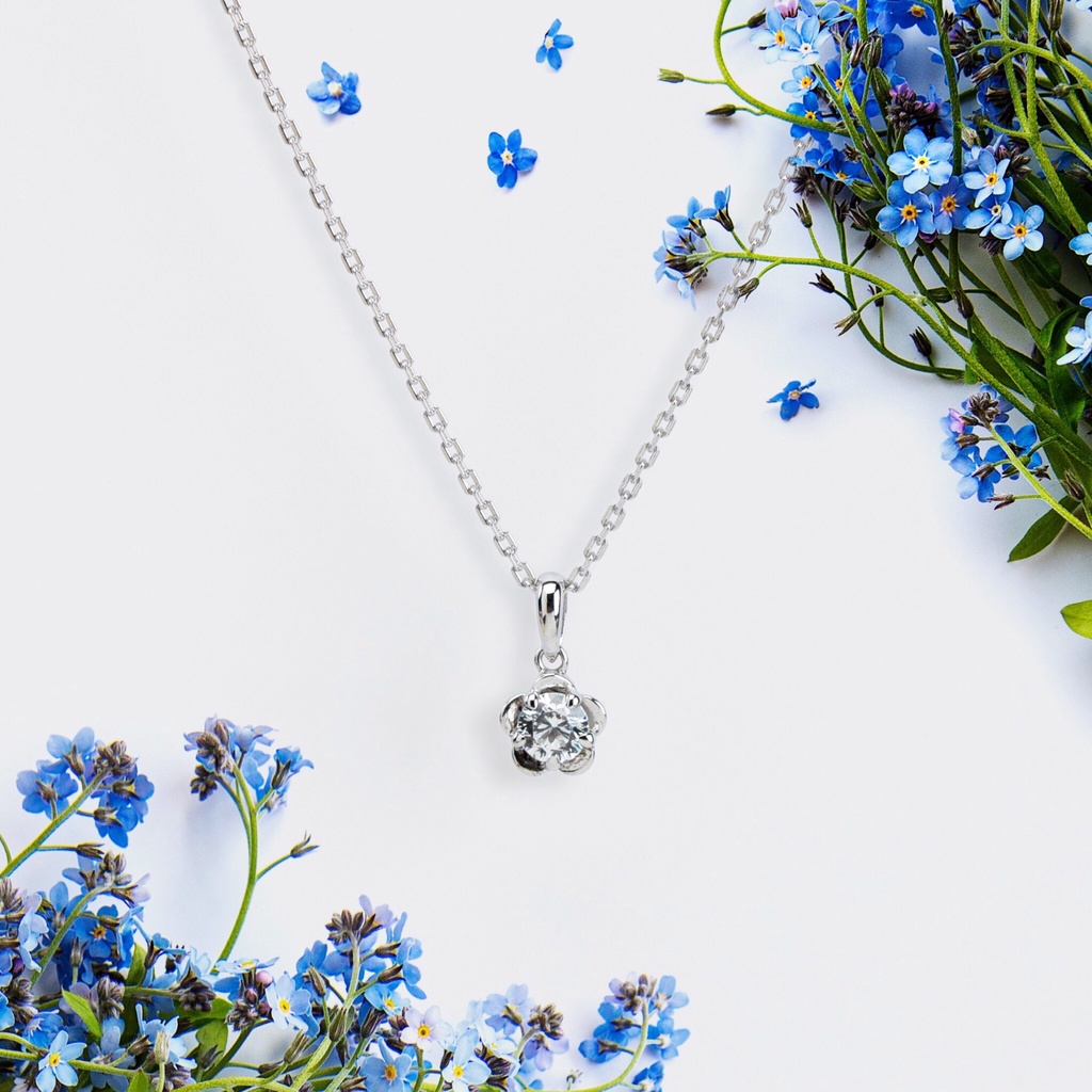 Merii สร้อยคอเงินแท้ 925 ประดับ CZ ดีไซน์จี้รูปดอกฟอร์เก็ตมีน็อต