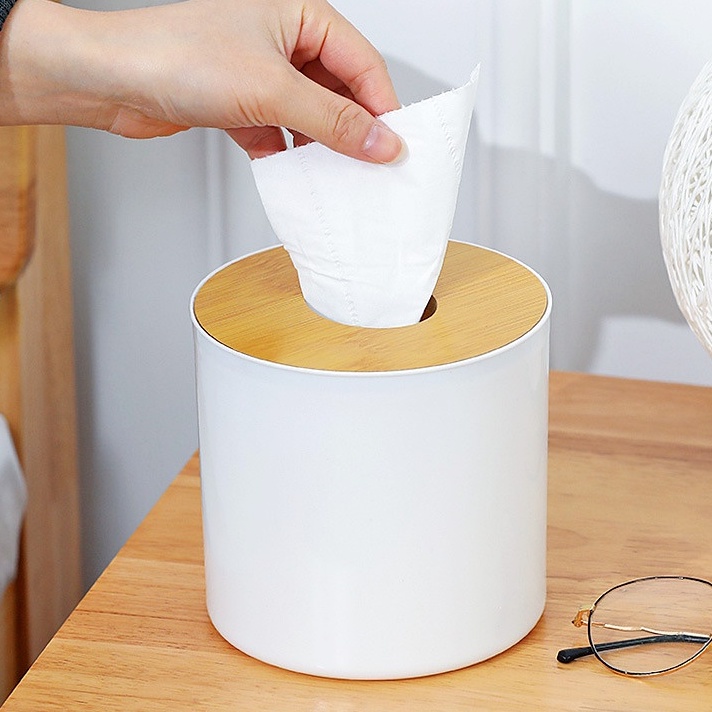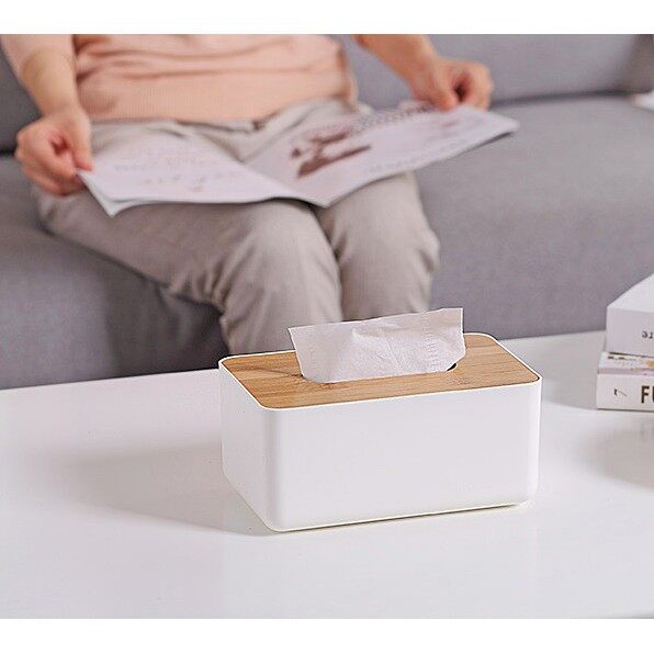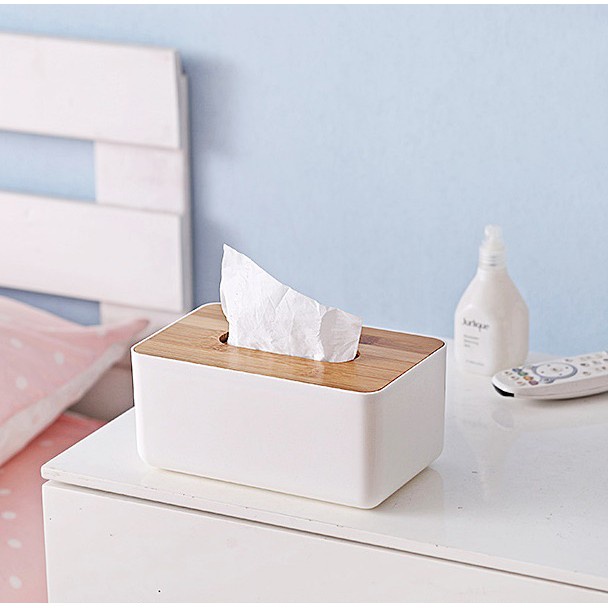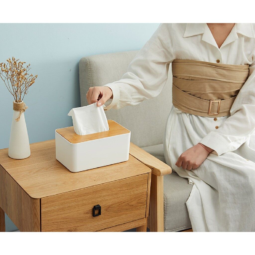 [ขายดี]กล่องใส่ทิชชู่ฝาไม้ ฝาปิดผลิตจากไม้จริง กล่องจัดระเบียบ D023