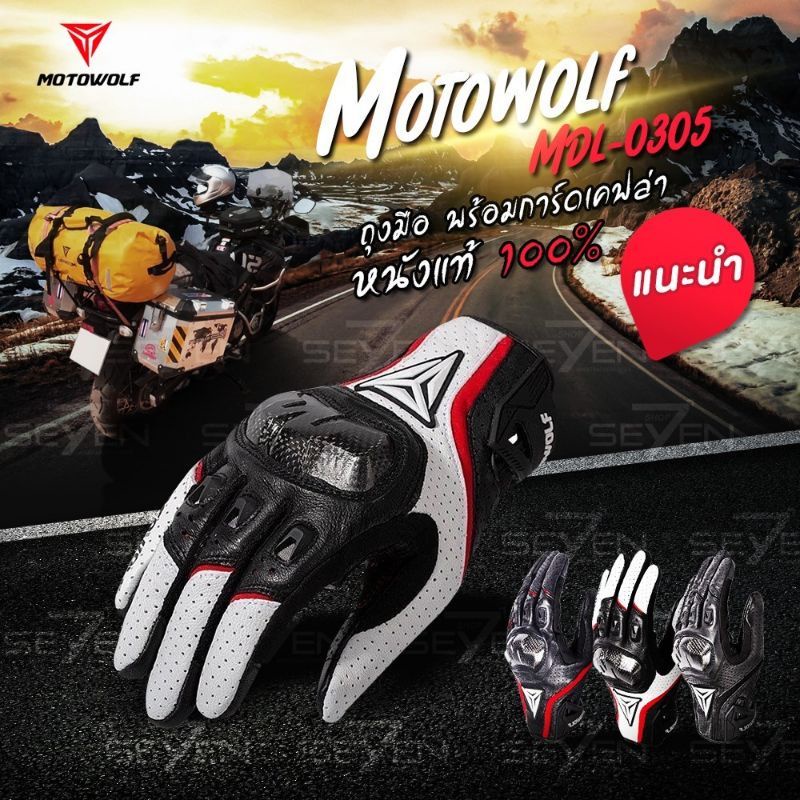 [ซื้อใน Live ลด 120 บาท]🔥 MOTOWOLF MDL 0305 ถุงมือขับมอเตอร์ไซด์ ถุงมือหนังแท้พร้อมการ์ดคาร์บอนเคฟล่า