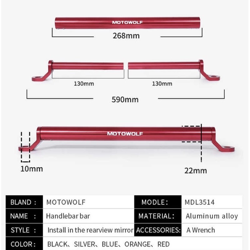 [ทักแชท มีโค้ดลด]🔥 MOTOWOLF MDL 3514 บาร์เสริม บาร์ยาว ติดมอเตอร์ไซค์ บาร์ค้ำแฮนด์ ติดรูก้านกระจก ติดแฮนด์บาร์