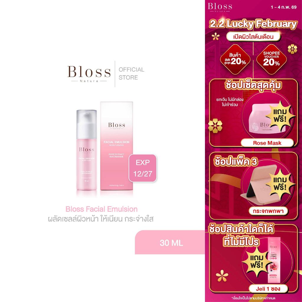 Bloss Facial Emulsion ครีมบำรุงผิว 30ml. ช่วยผลัดเซลล์ผิวและสร้างเซลล์ผิวใหม่ ให้ผิวกระจ่างใส