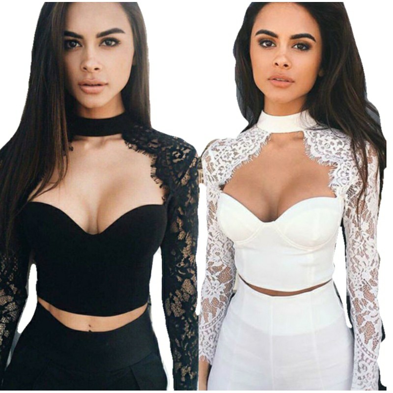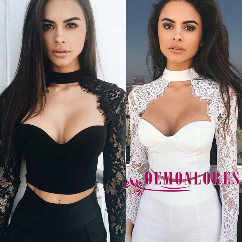 เสื้อครอปแขนยาว แต่งลูกไม้ แฟชั่น เหมาะใส่หน้าร้อน สําหรับผู้หญิง 1 ชิ้น