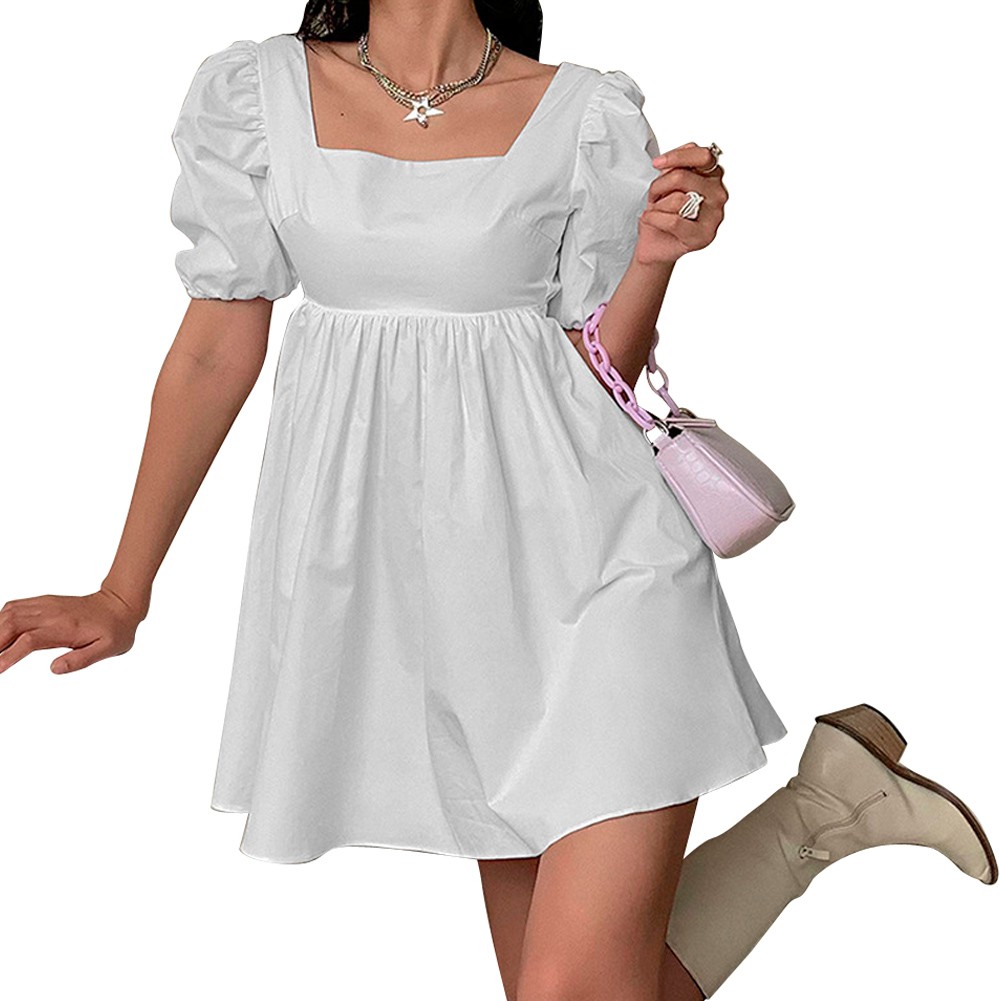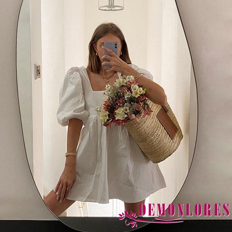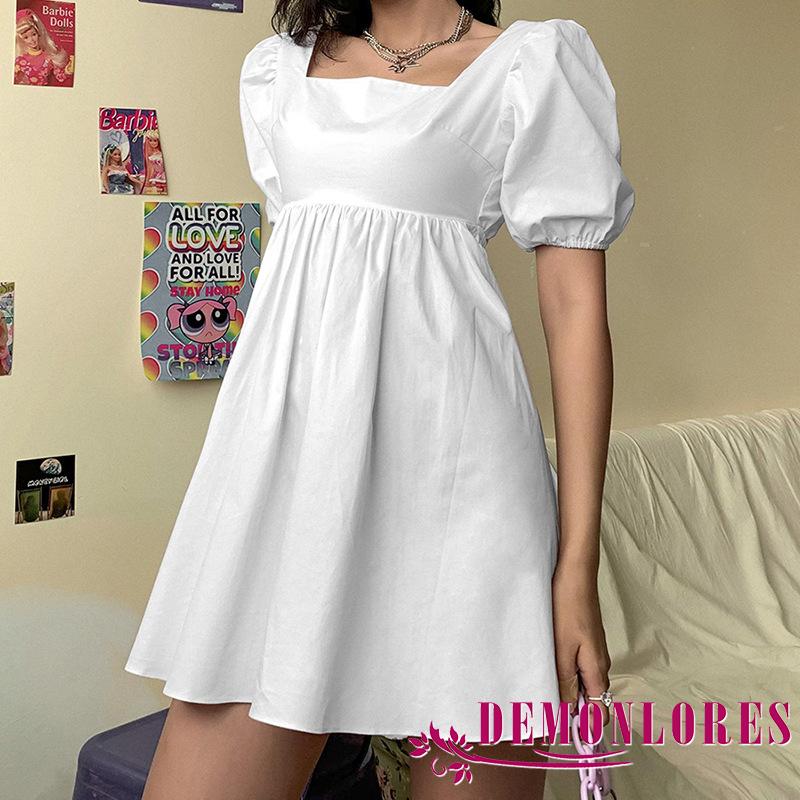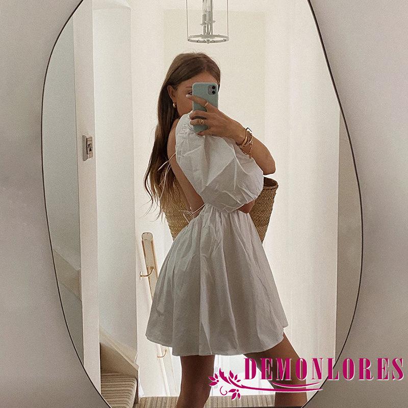 Demq ชุดเดรสสั้น แขนสั้น เปิดหลัง สีพื้น แฟชั่นสําหรับสตรี