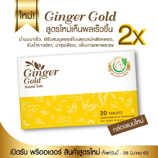 (หมดอายุเดือน มิถุนายน) Ginger Gold จินเจอร์โกลด์ วิตามินเพิ่มน้ำนม 1กล่อง 30เม็ด บำรุงน้ำนม ​มีวิตามินและ DHA