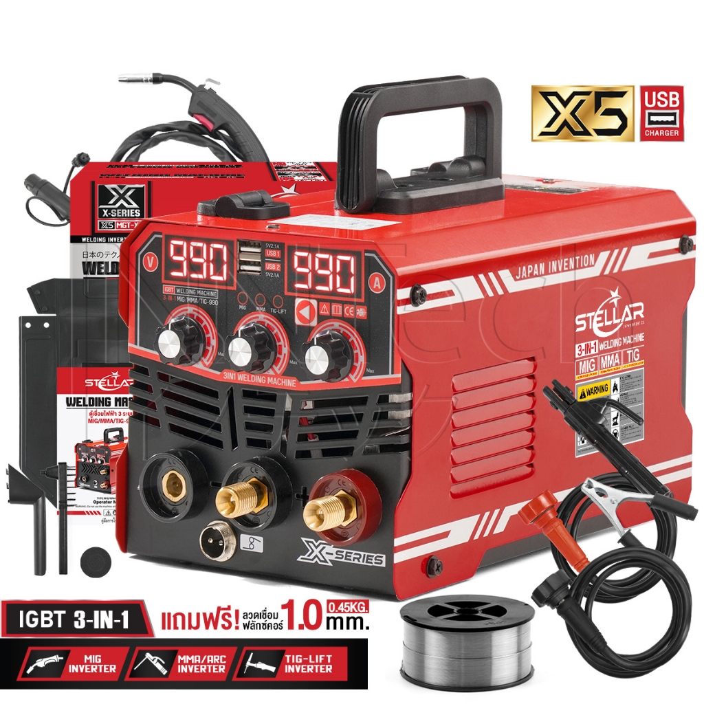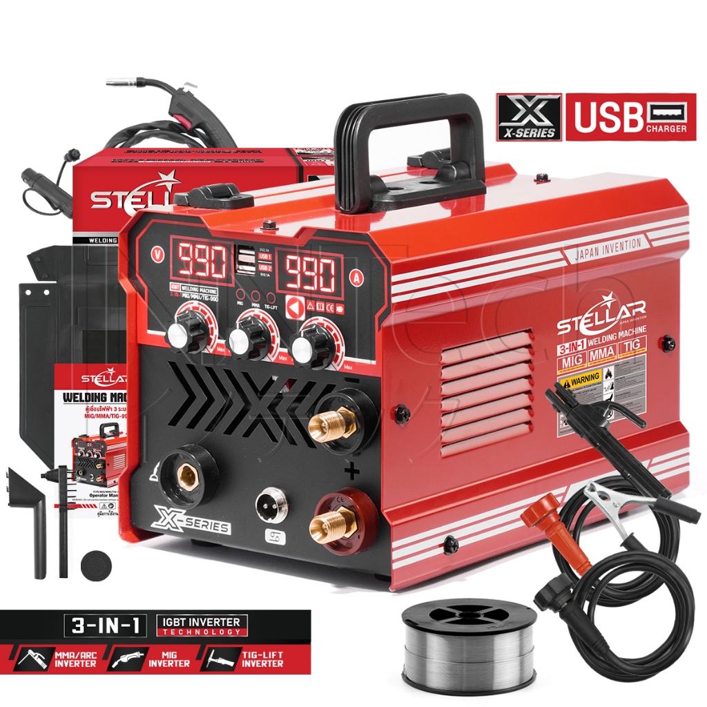 STELLAR ตู้เ ชื่อมไฟฟ้า 3 ระบบ X-SERIES รุ่น MIG/MMA/TIG-990 พร้อมระบบ FLUX CORED, MIG, TIG LIFT และ MMA อุปกรณ์ครบชุด