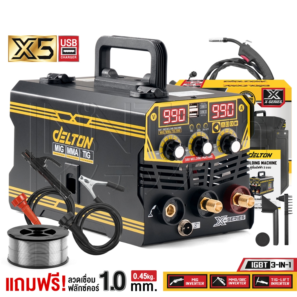 DELTON ตู้เชื่อมไฟฟ้า 3 ระบบ X-SERIES รุ่น MIG/MMA/TIG-990 พร้อมระบบ FLUX CORED, MIG, TIG LIFT และ MMA อุปกรณ์ครบชุด