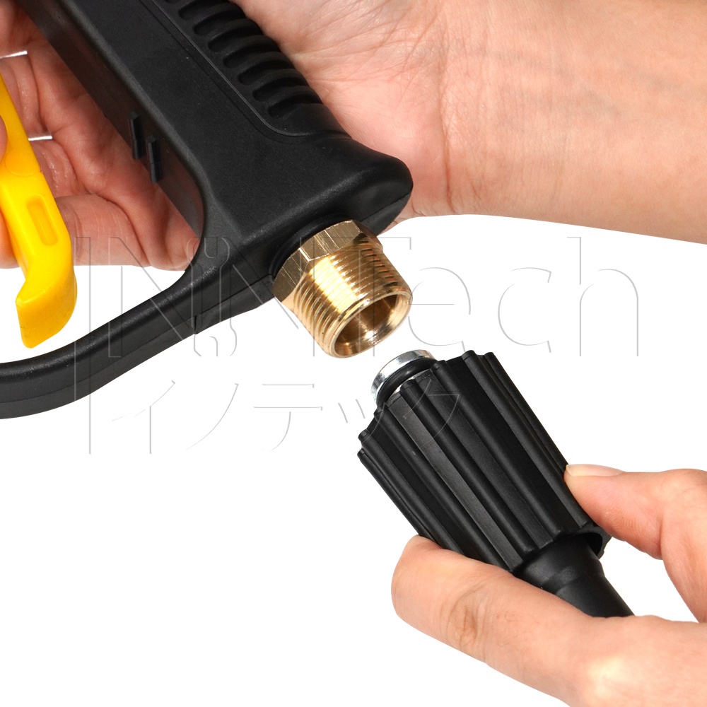 InnTech ปืนฉีดน้ำแรงดันสูง (แบบสั้น) พร้อมหัวฉีดปรับแรงดันน้ำ 3 ระดับ ปืนฉีดน้ำ ปืนอัดฉีดน้ำแรงดันสูง ใช้งานกับ เครื่องฉีดน้ำแรงดันสูง เครื่องฉีดน้ำ แรงดันสูง แบบเกลียวขัน max 300-400 bar