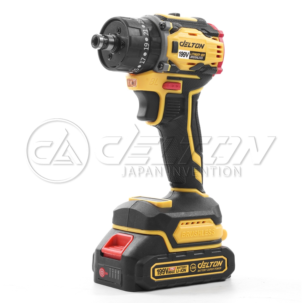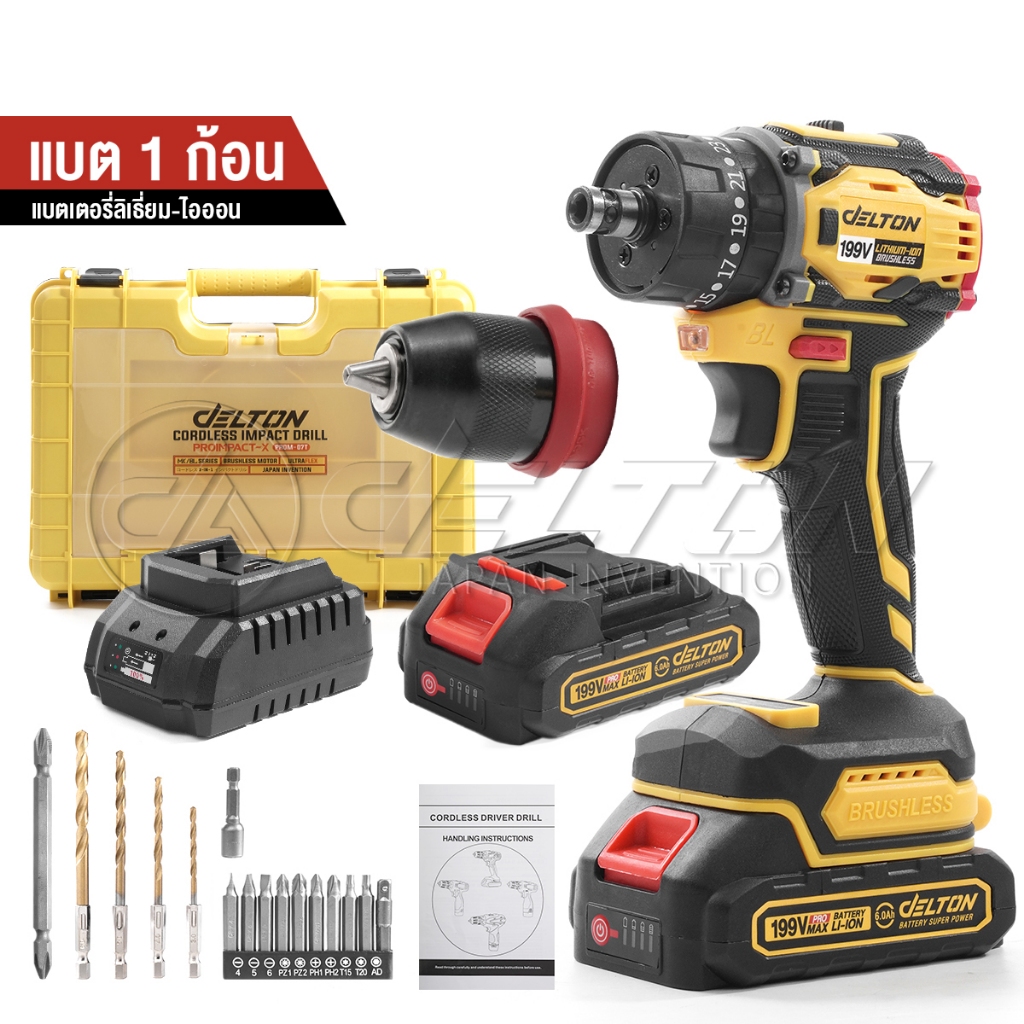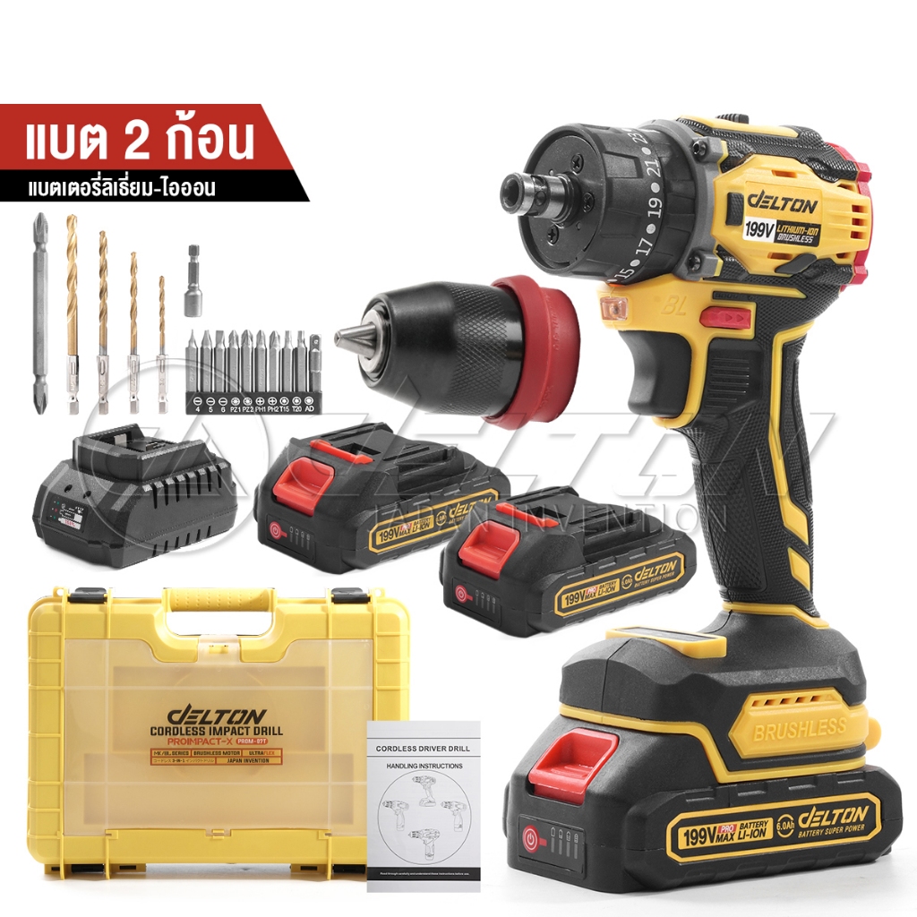 DELTON สว่านไร้สาย 3 ระบบ 199V มอเตอร์บัสเลส ไขควงคลัชกระแทก 3in1 ProImpact-X รุ่น PROM-07T ฟรี! ดอกไขควง ดอกสว่าน