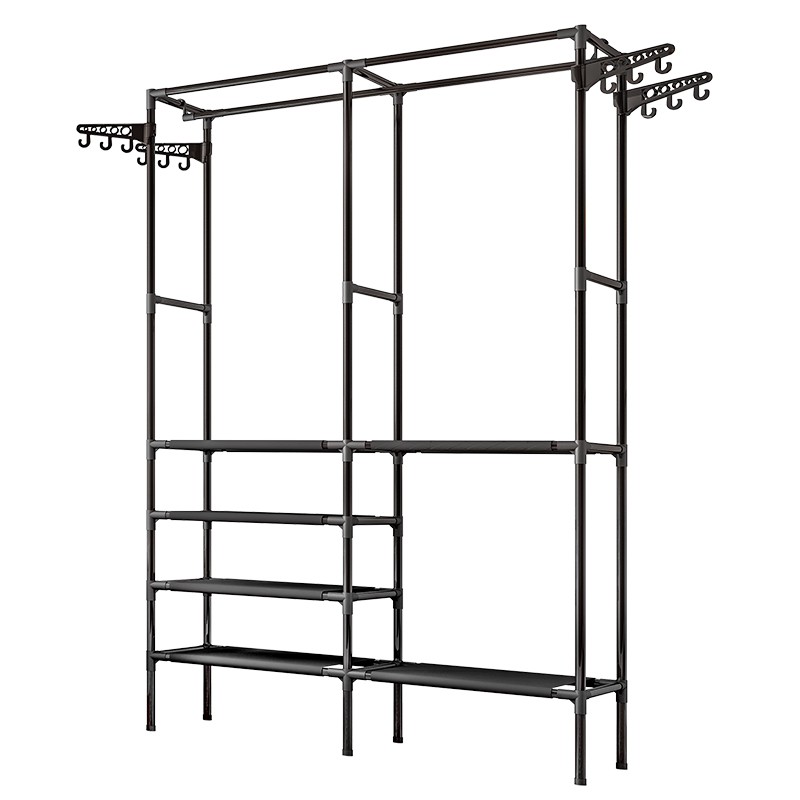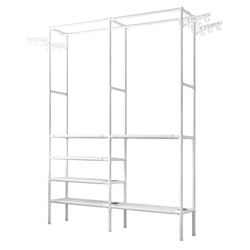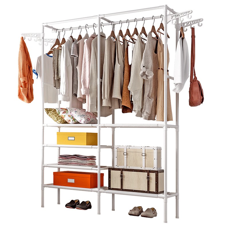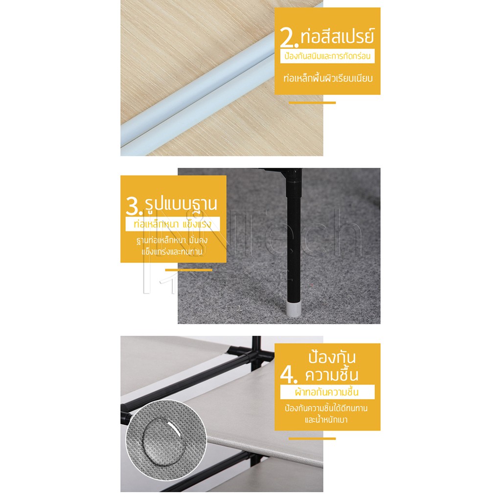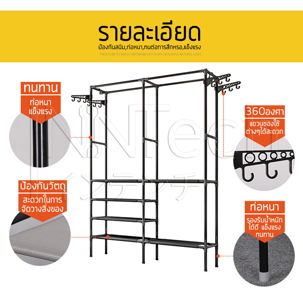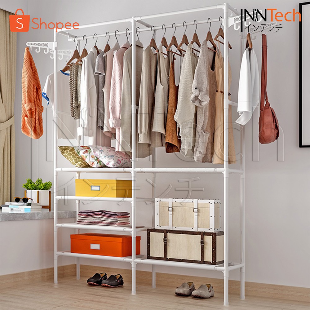 Inntech ราวตากผ้าเหล็ก ทรงสี่เหลี่ยม 4 ชั้น 6 ช่อง พร้อมที่แขวน ตะขอเกี่ยว 12 อัน ชั้นวางผ้า Non Woven ราวแขวนผ้า 0402