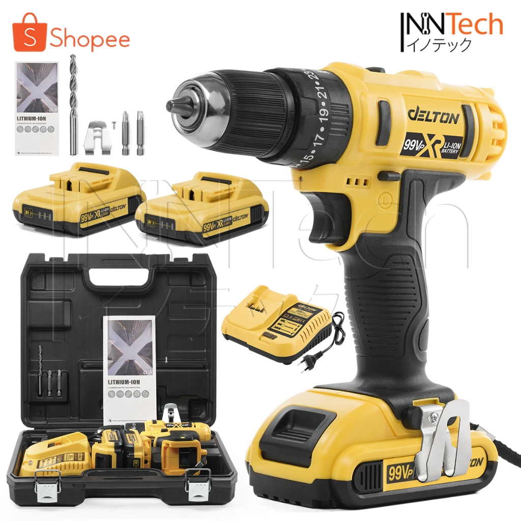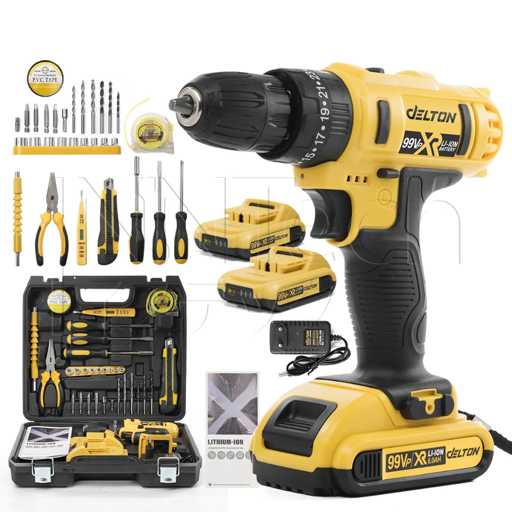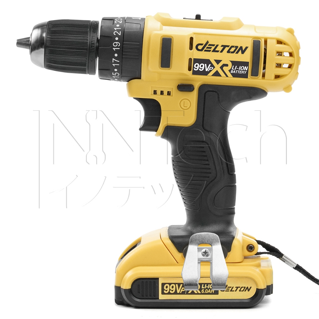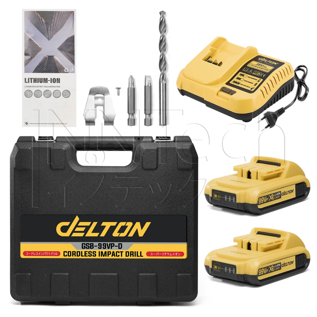 DELTON สว่านไร้สาย 3 ระบบ 99V ทรงพลัง สำหรับงานหนัก พร้อมแบตเตอรี่ 2 ก้อน ดอกสว่าน แท่นชาร์จขนาดใหญ่ รุ่น GSB-99VP-D