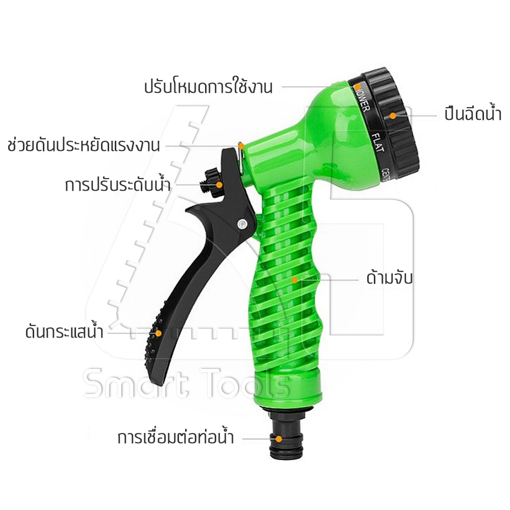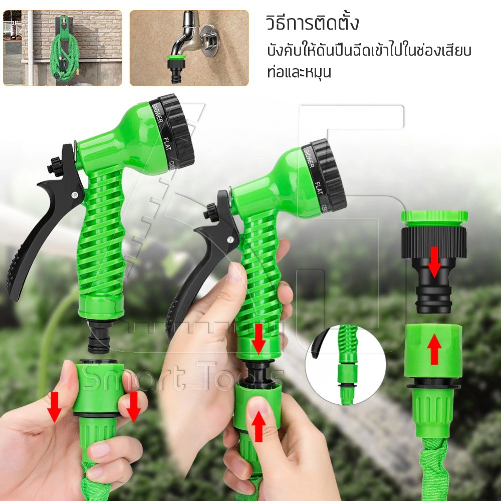 -พร้อม ส่ง-MAGIC HOSE สายยางฉีดน้ำยืดได้ 3 เท่า ความยาวยืดสุด 22.5 เมตร/75 ฟุต ปรับหัวฉีดน้ำได้ 7 โหมด (สีเขียว)