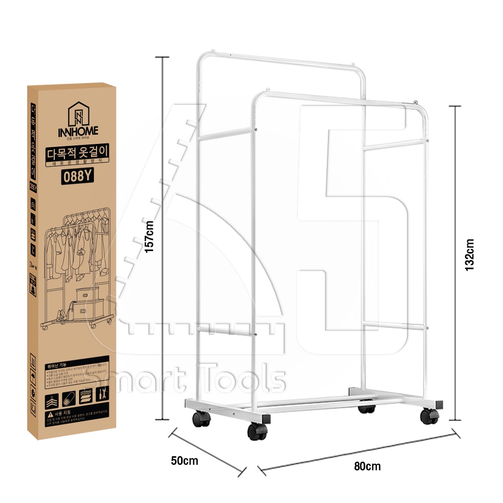 InnHome ราวตากผ้า ราวแขวนผ้า 3in1 บาร์คู่ 2 ระดับ ราวตากผ้าอเนกประ สงค์ รับน้ำหนักได้ 100Kg ขนาด157x50x80cm รุ่น 088Y
