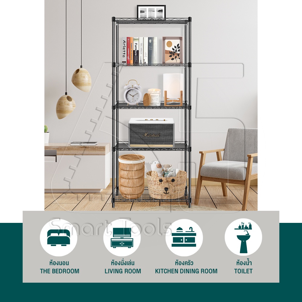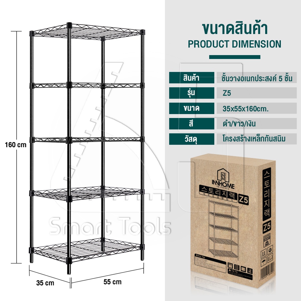 InnHome ชั้นวางของเหล็ก 5 ชั้น วางของ เก็บของ อเนกประสงค์ รองรับน้ำหนักได้ถึง 150 กก. ขนาด 160*55*35cm รุ่น Z5