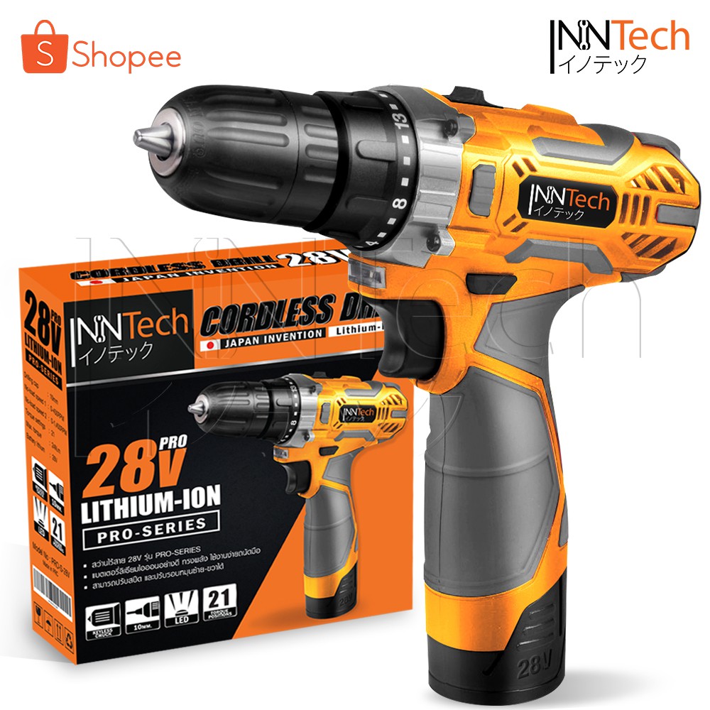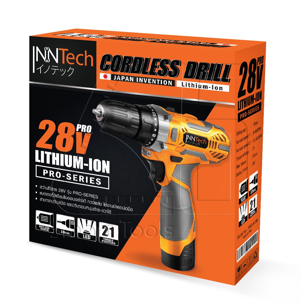 InnTech สว่านไร้สาย สว่าน 28V 2 ระบบ รุ่น PRO-S-28V ปรับสปีดได้ สำหรับเจาะไม้ เหล็ ก ขันน็อตสกรู Cordless Drill