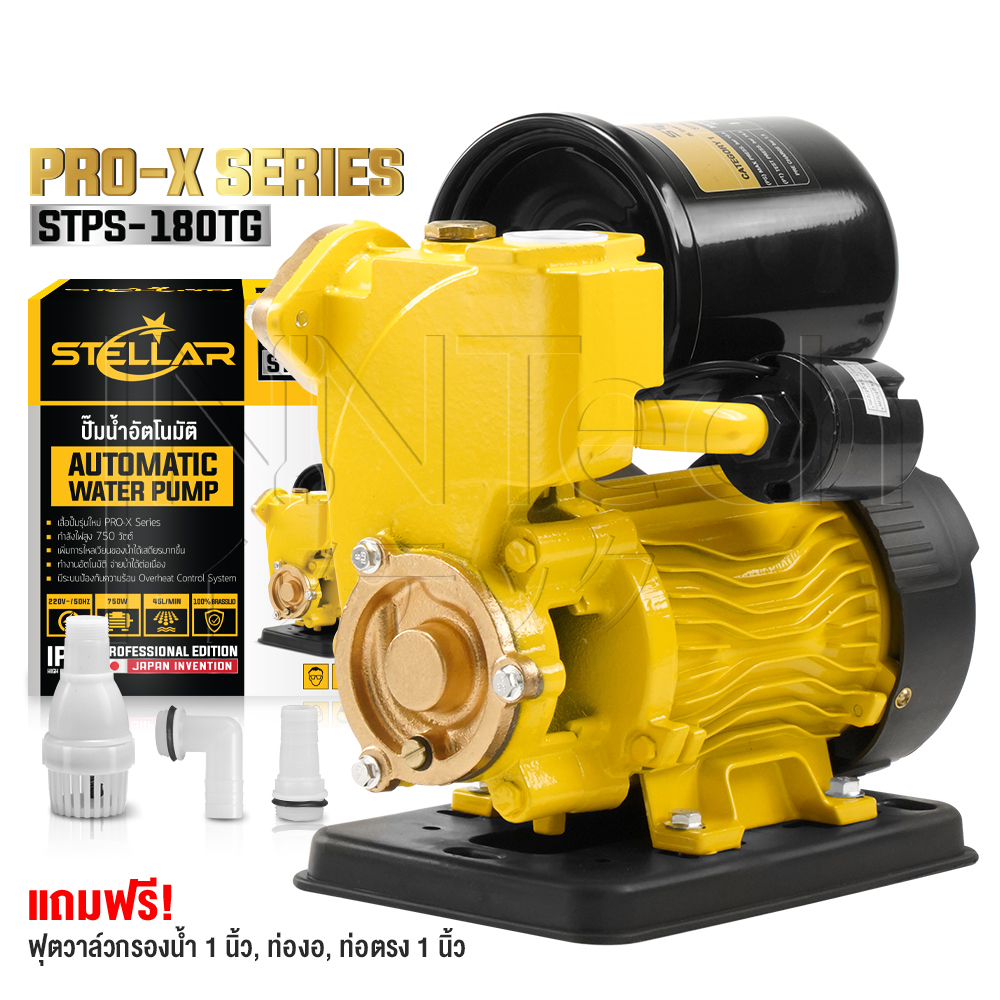 TOMA JAPAN ปั๊มน้ำออโต้ 750W รุ่นใหม่ PS-180 Gold แถมฟรี! ฟุตวาล์ว กะโหลกดูดน้ำ ข้อต่อท่องอ-ท่อตรง ครบชุด