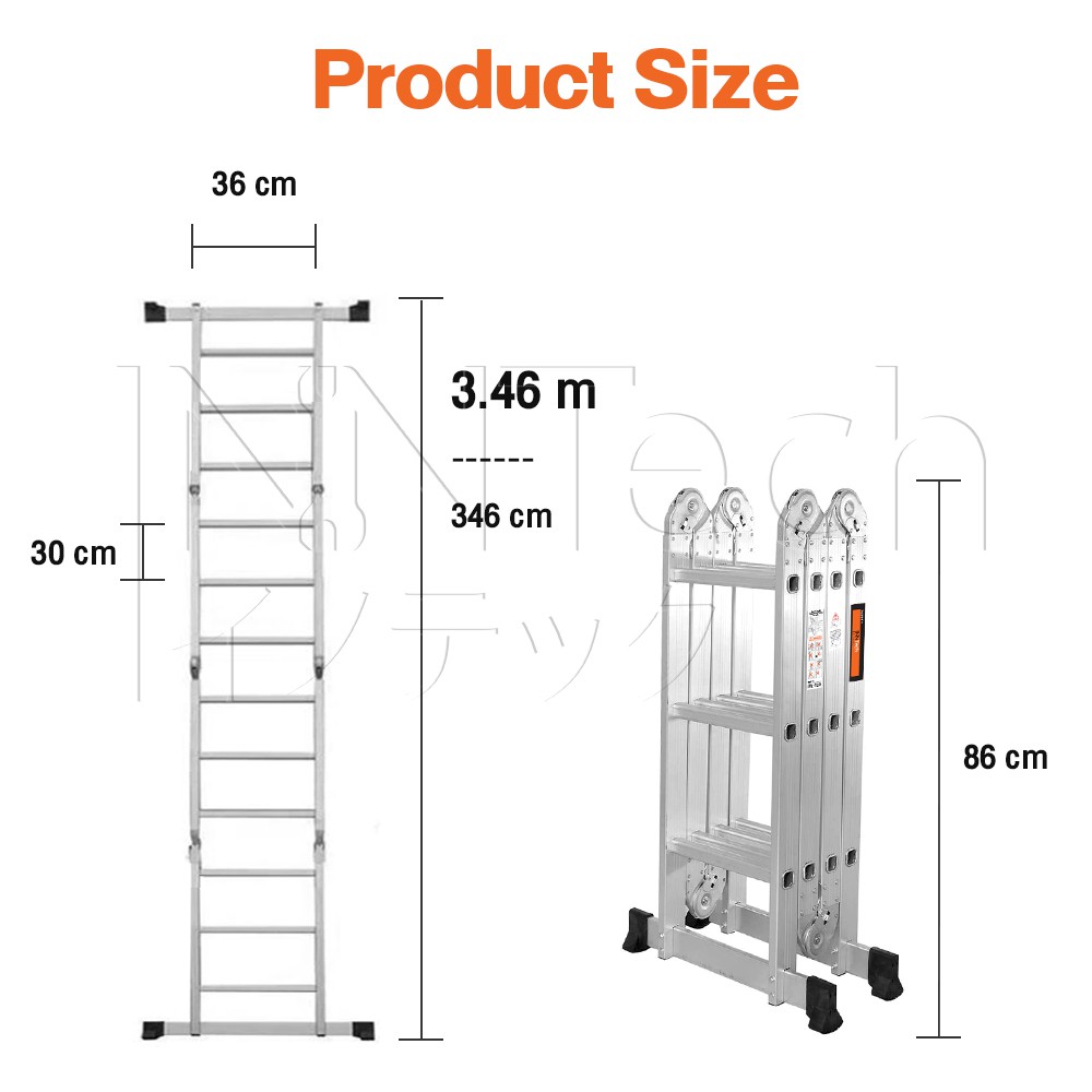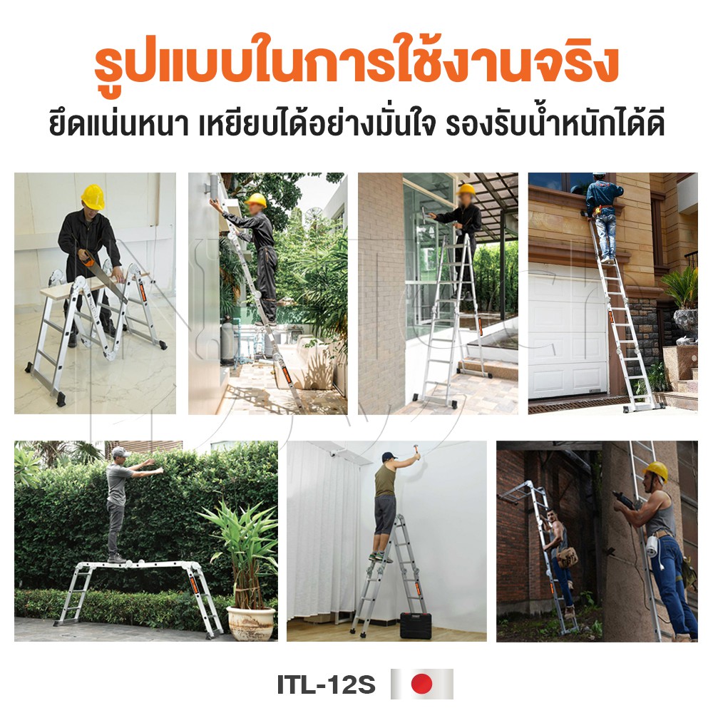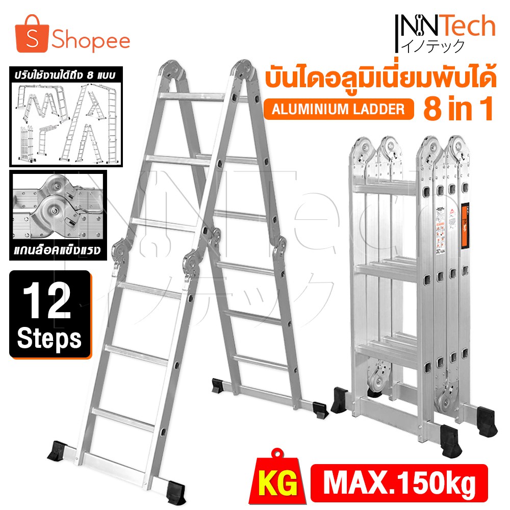 [ล้างสต๊อก] Inntech บันไดอลูมิเนียมอเนกประสงค์พับได้ 12 ขั้น 8-in-1 รุ่นหนาพิเศษ รองรับน้ำหนัก 150K รุ่น ITL-12S
