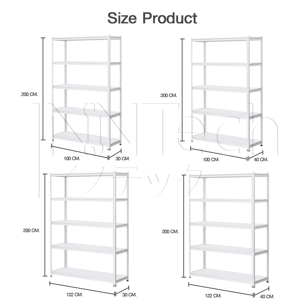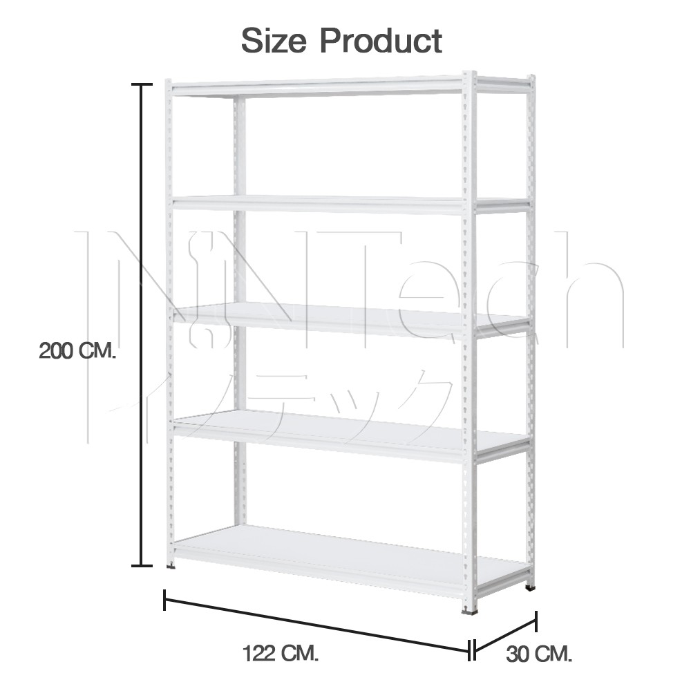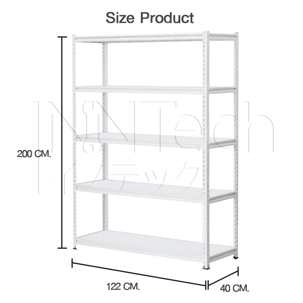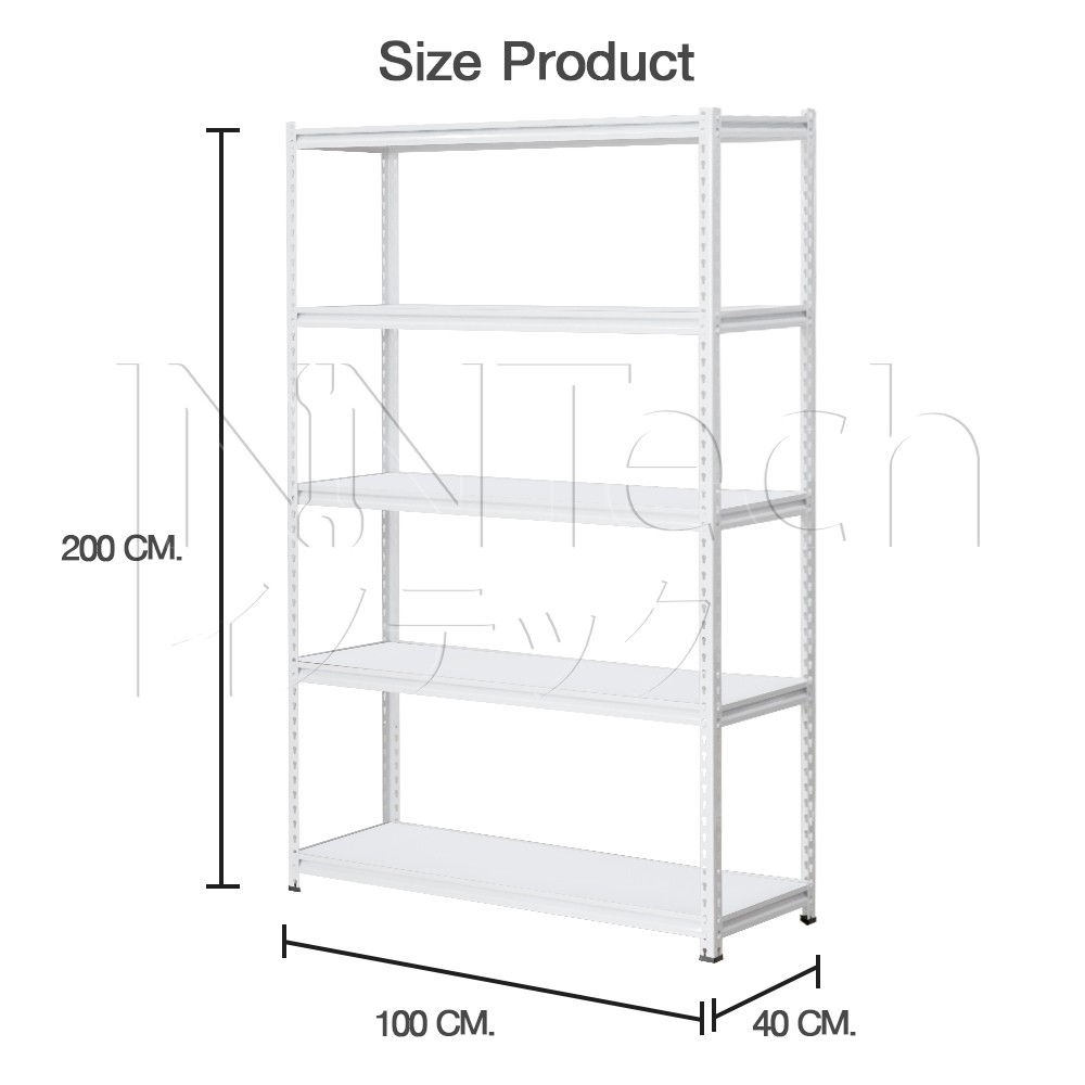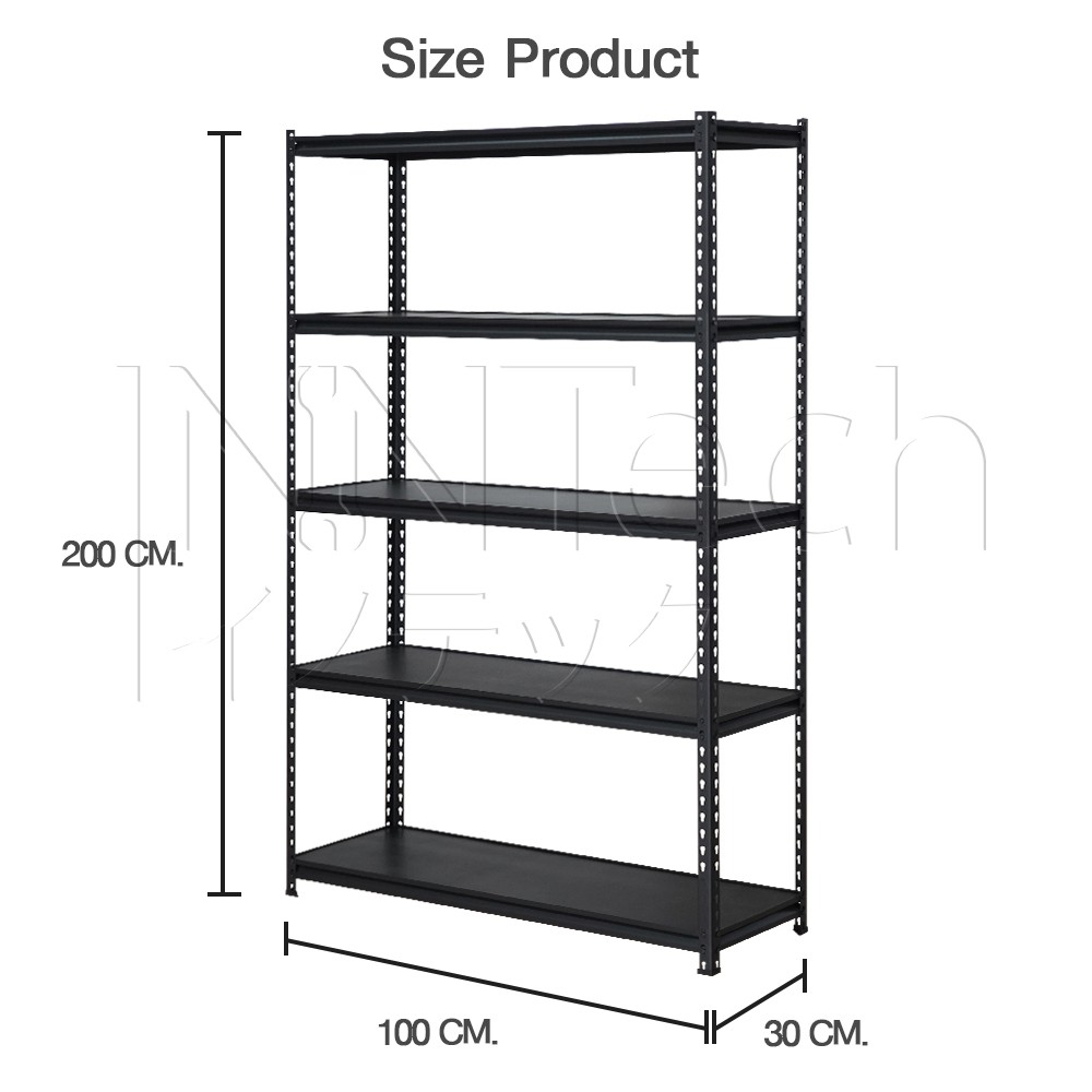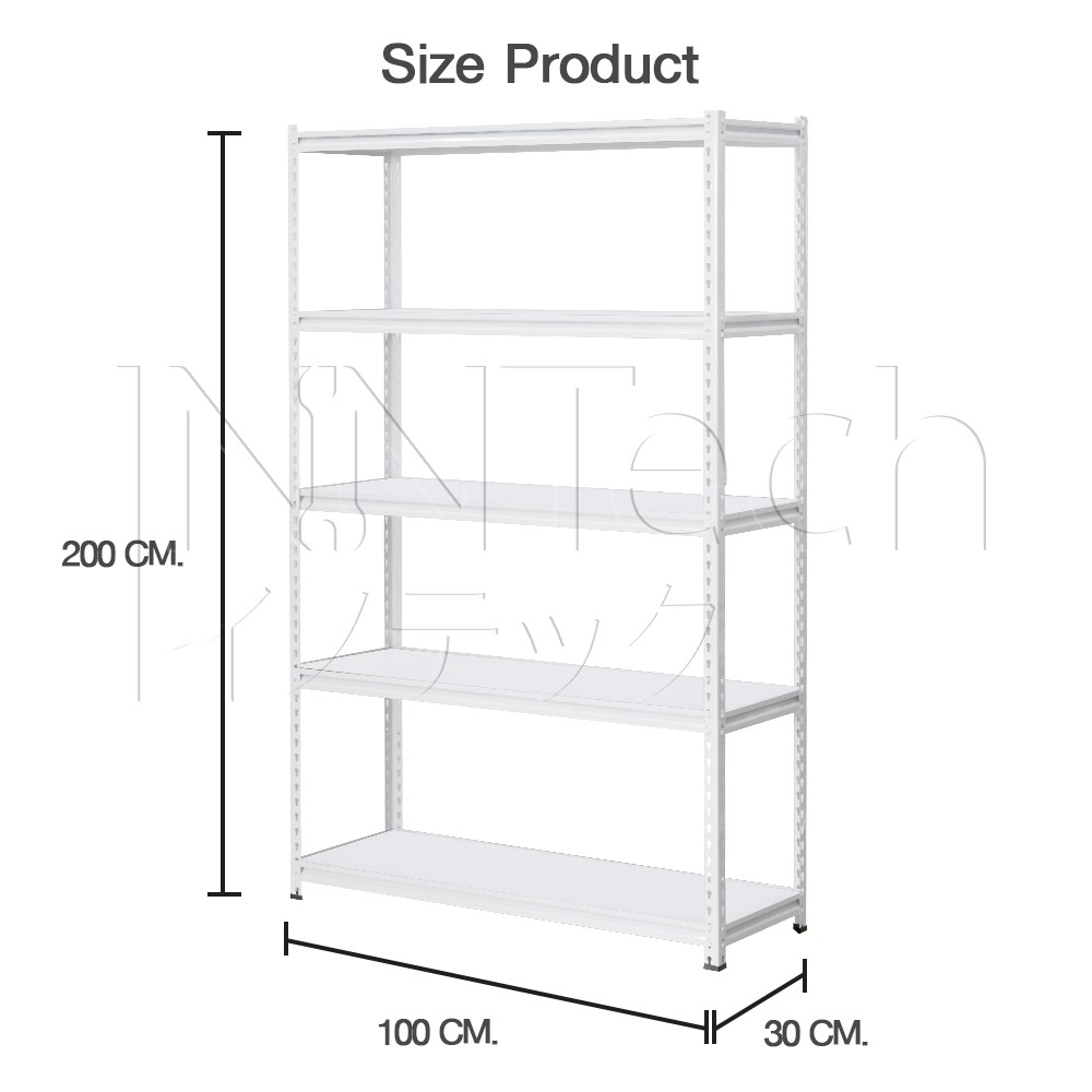 InnTech Warehouse Shelf ชั้นวางของสินค้า เหล็กฉาก 5 ชั้น สูง 2 เมตร แผ่นไม้ MDF รับน้ำหนักได้สูงสุดถึง 300 กิโล