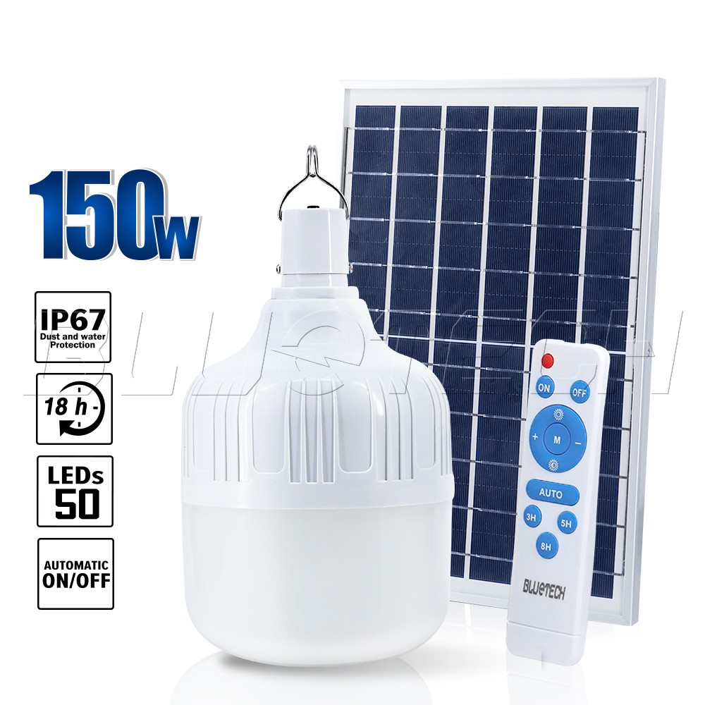 Bluetech USA ไฟตุ้ม ไฟโซล่าเซลล์ ไฟตุ้มโซล่าเซลล์ Solar Light Solar Cell ขนาด 150วัตต์ สี ขาว (White) / วอร์มไวท์ (Warm)