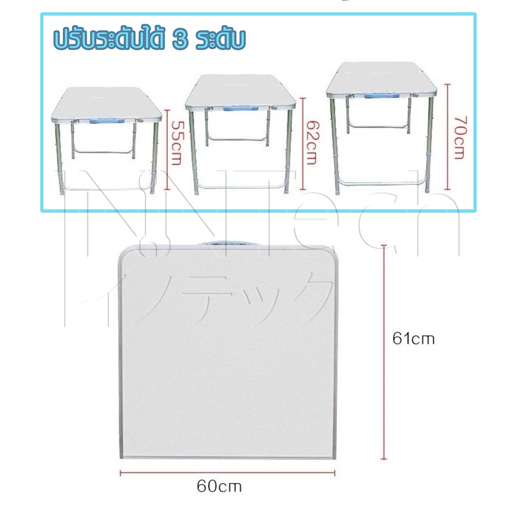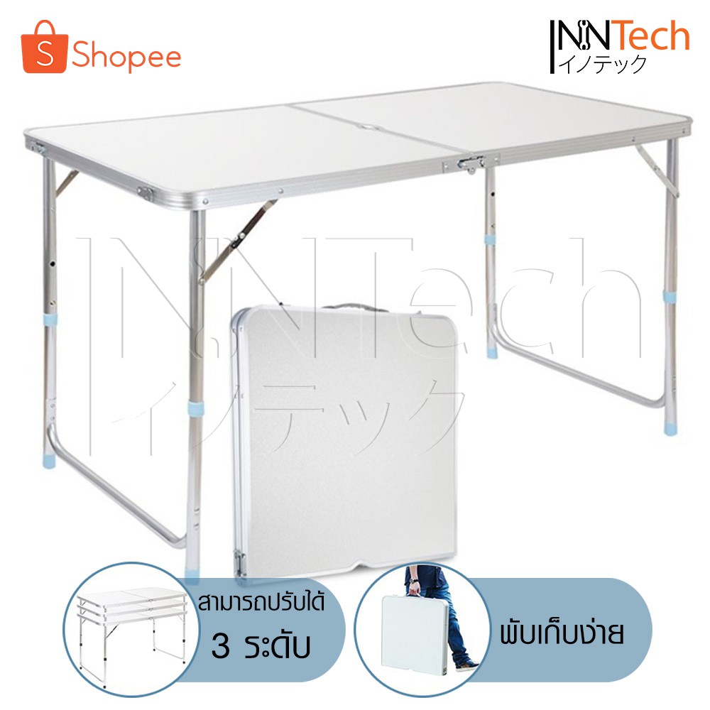 InnHome โต๊ะปิกนิก โต๊ะพับ ขาอะลูมิเนียม ปรับระดับได้ 3 ระดับ ขนาด60*120 cm โต๊ะพับอลูมิเนียมแบบกระเป๋าพกพา ขาอลูมิเนียม