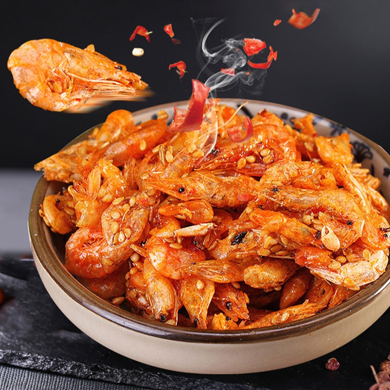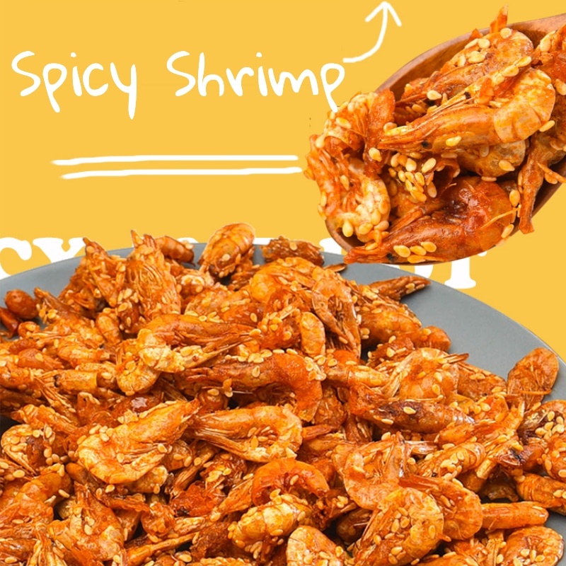 กุ้งสไปซี่ กุ้งย่างกึ่งสำเร็จรูป ของว่างทะเล กุ้งกรอบรสเผ็ด แคลเซียมสูง อาหารว่างปรุงสุก 83g