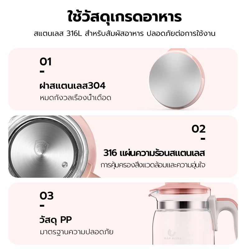 กาต้มน้ำ HAN RIVER กาต้มน้ำไฟฟ้า ความจุ 1.2 ลิตร ตั้งอุณหภูมิได้ อุณหภูมิคงที่ 24 ชั่วโมง