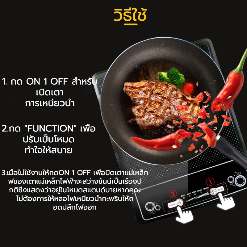 HAN RIVER เตาแม่เหล็กไฟฟ้า เตาไฟฟ้า 1200W ปรับความร้อนได้ รับประกัน 1 ปี ฟรีหม้อสเตนเลส