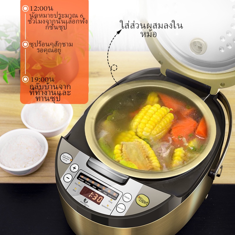 HAN RIVER หม้อหุงข้าวไฟฟ้า อัจฉริยะ 2 ลิตร โหมดดิจิทัล-สีทอง