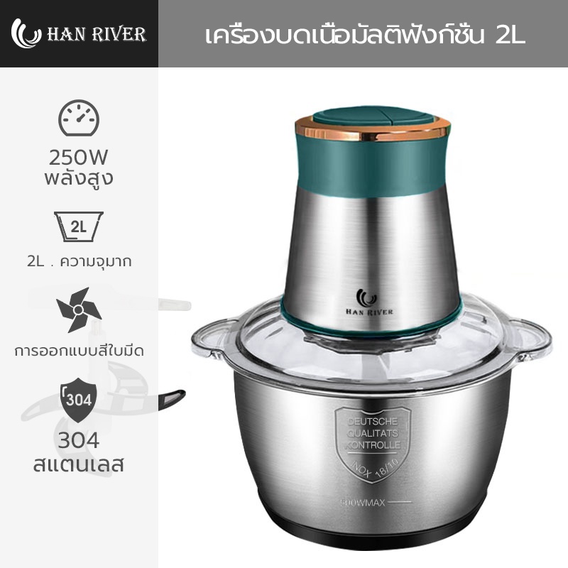 HANRIVER เครื่องปั่นผสมอาหาร โถแก้ว อเนกประสงค์ พร้อมเครื่องผสม ความจุ 2 ลิตร