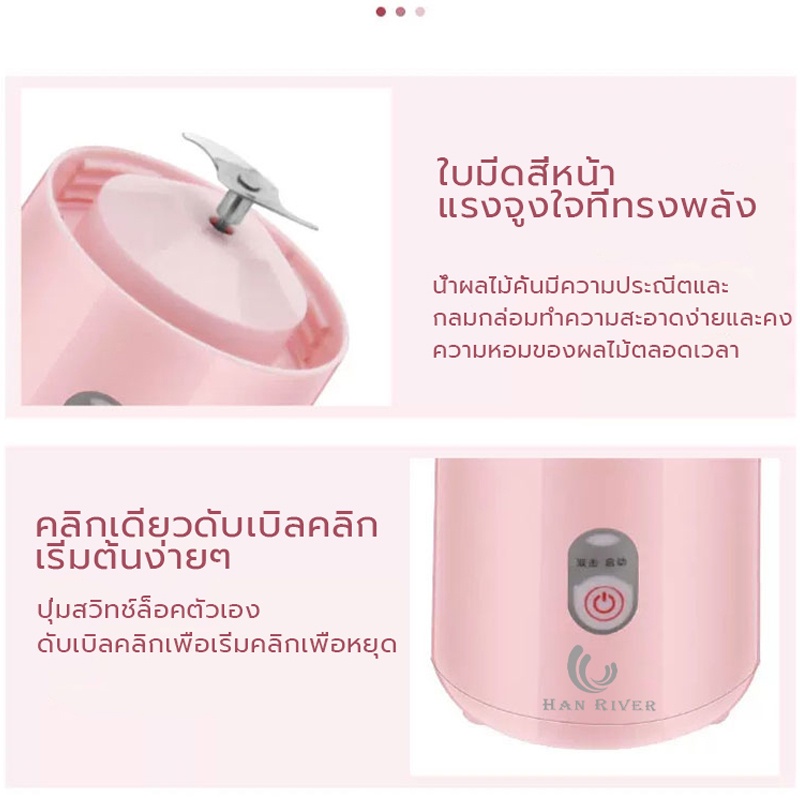 HAN RIVER เครื่องปั่นน้ำผลไม้แบบไร้สาย 6 ใบมีด