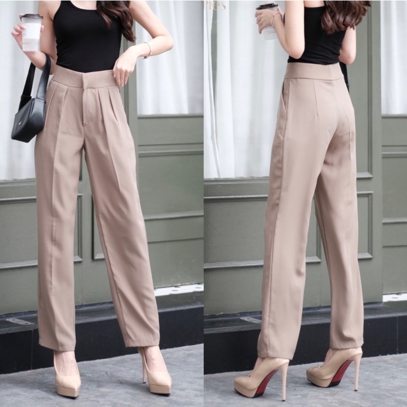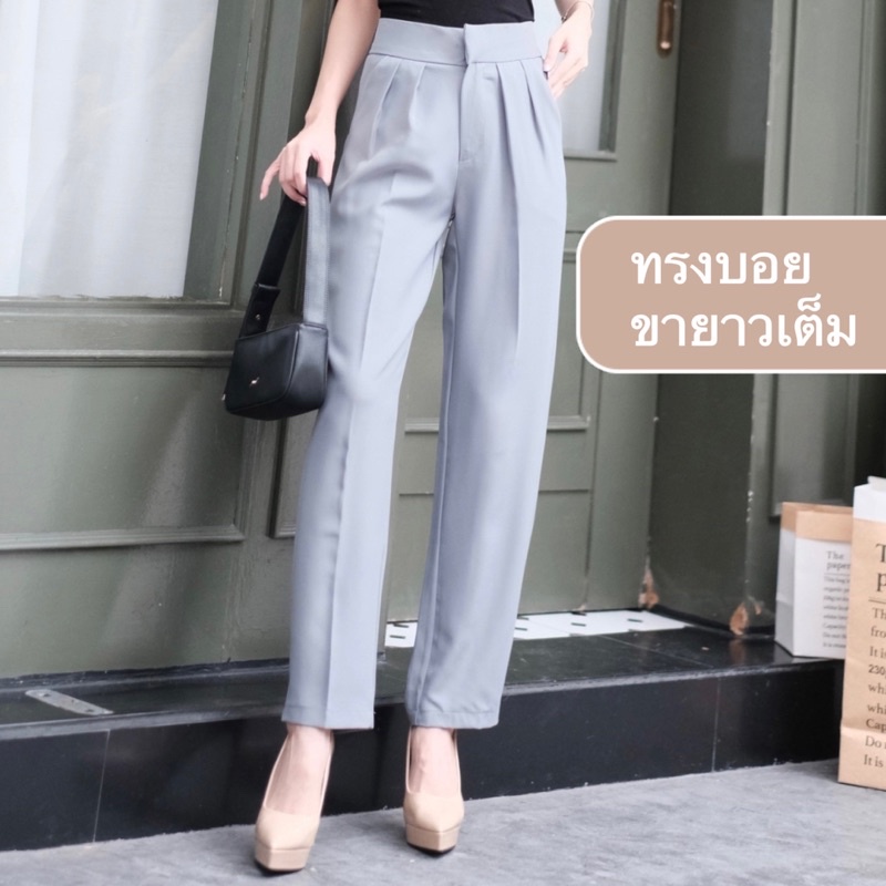 AB Skinny กางเกงผ้าเบลล่า ทรงลีซ่า ใส่ทำงาน ใส่เที่ยว แฟชั่นทรงบอย เอวสูง