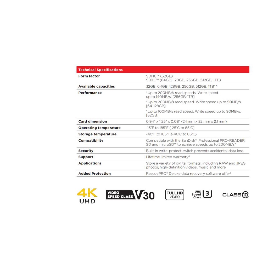 SANDISK EXTREME PRO SDXC UHS-I CARD 128GB (SDSDXXD-128G-GN4IN) ความเร็วอ่าน 200MB/s เขียน 90MB/s