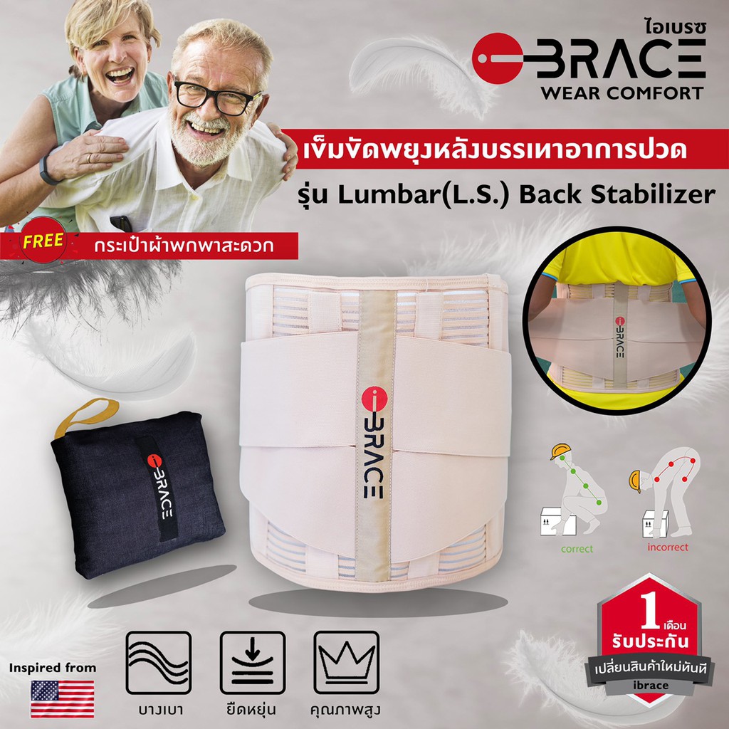 🔥Lumbar Support🔥 iBrace Back Support รุ่น Lumbar Back Stabilizer L.S. เข็มขัดพยุงหลังแบบยาวถึงก้นกบ