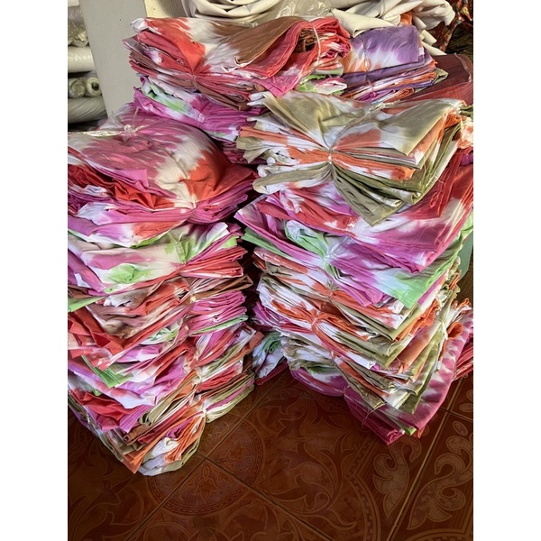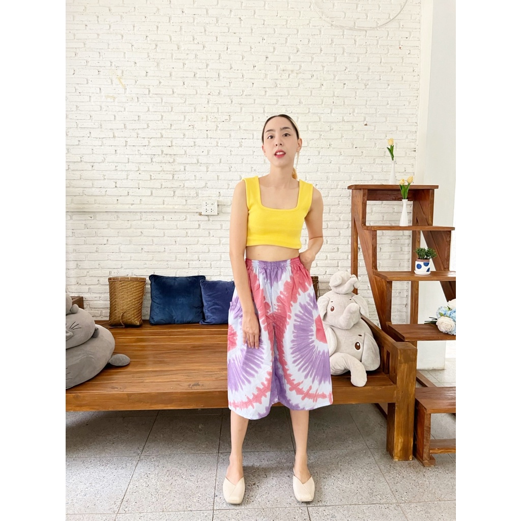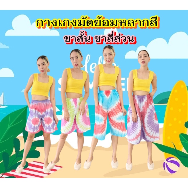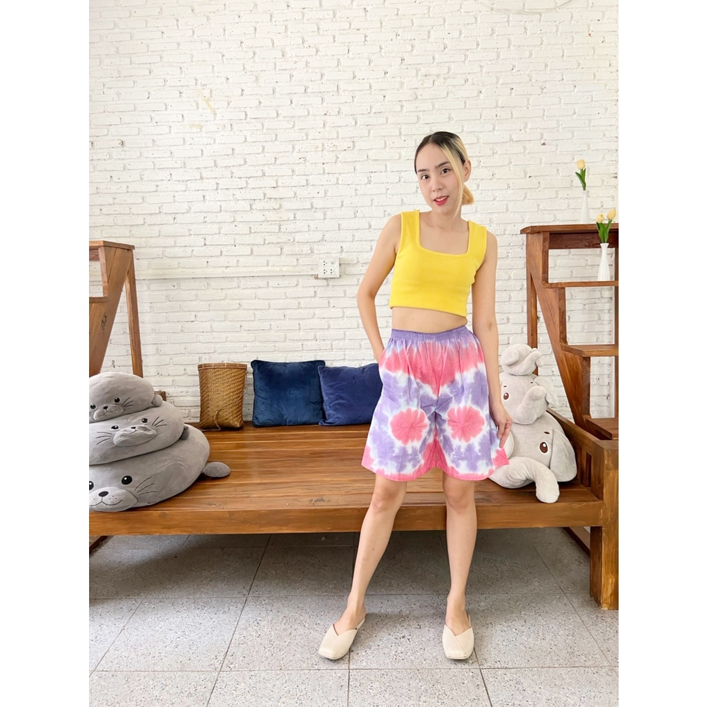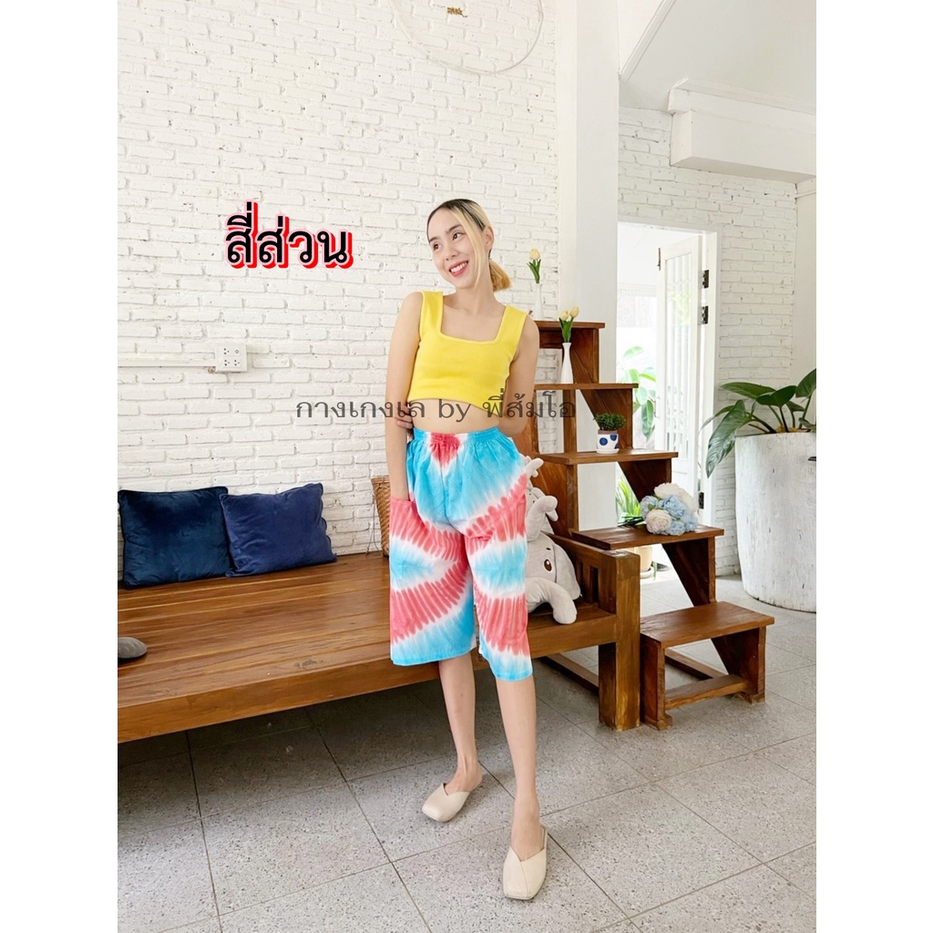 กางเกงมัดย้อมเอวยืดสี่ส่วน+ขาสั้น