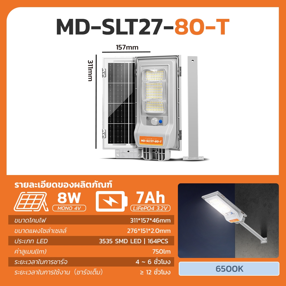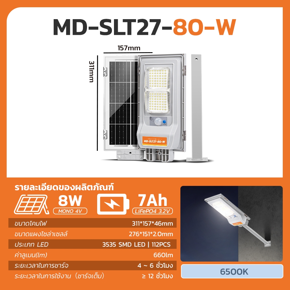 MODI โคมไฟถนนโซล่าเซลล์ 50W 80W แสงขาว แสงเหลือง daylight สว่างค้างถึงเช้า โคมไฟพลังงานแสงอาทิตย์