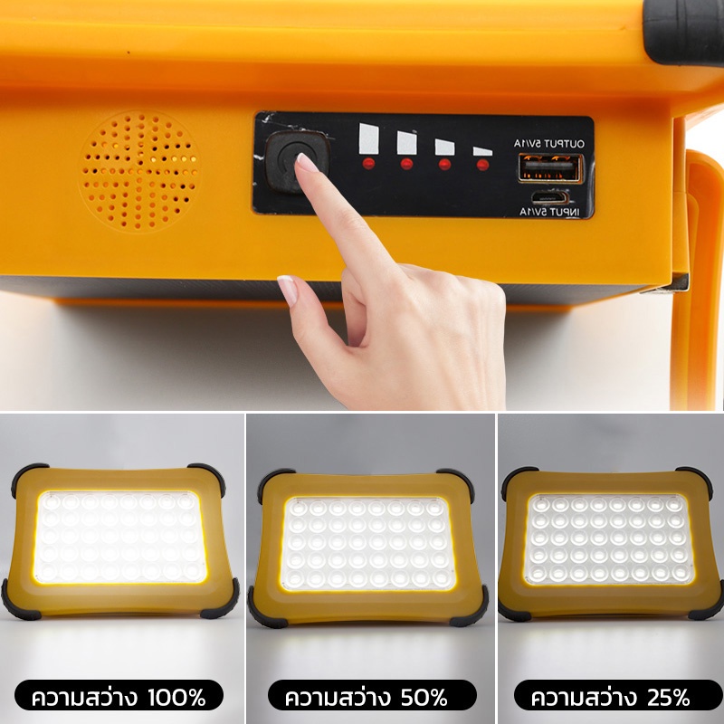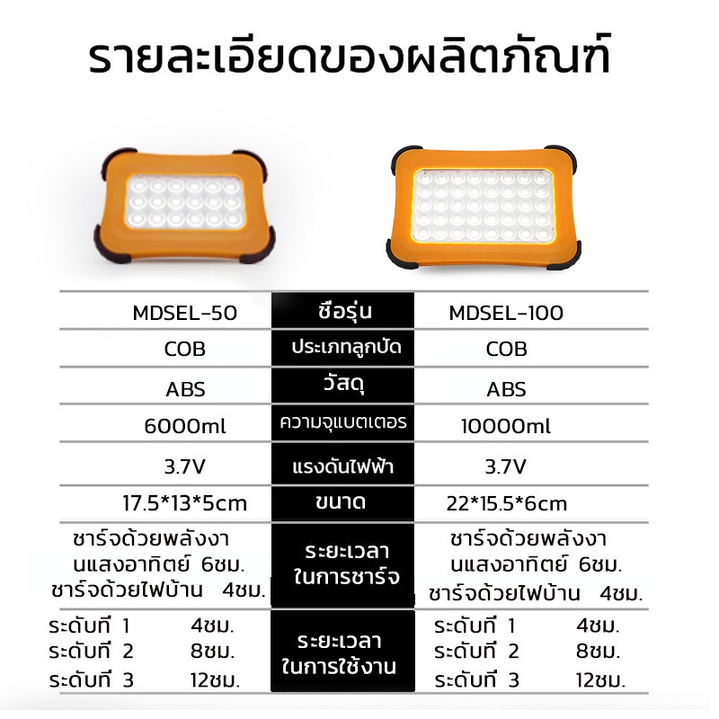MODI ไฟฉุกเฉิน ไฟสปอตไลท์ 50W 100W แสงข าว ไฟแค้มปิ้ง ไฟโซล่าเซลล์ พาวเวอร์แบงค์ ชาร์จUSB