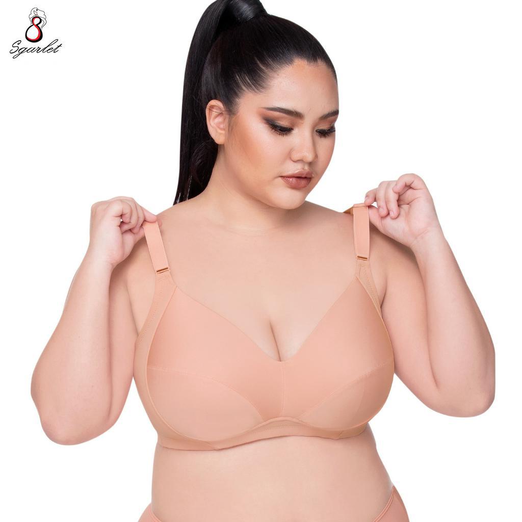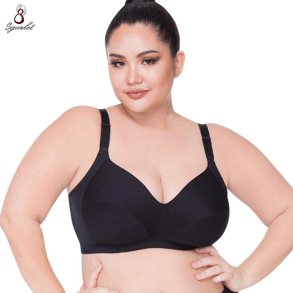 Sgarlet เสื้อในไซส์ใหญ่ไร้โครงสบายคัพ เก็บเ นื้อส่วนเกิน ตัวเรียบ สีดำ/เนื้อ/โอลด์โรส MB1507