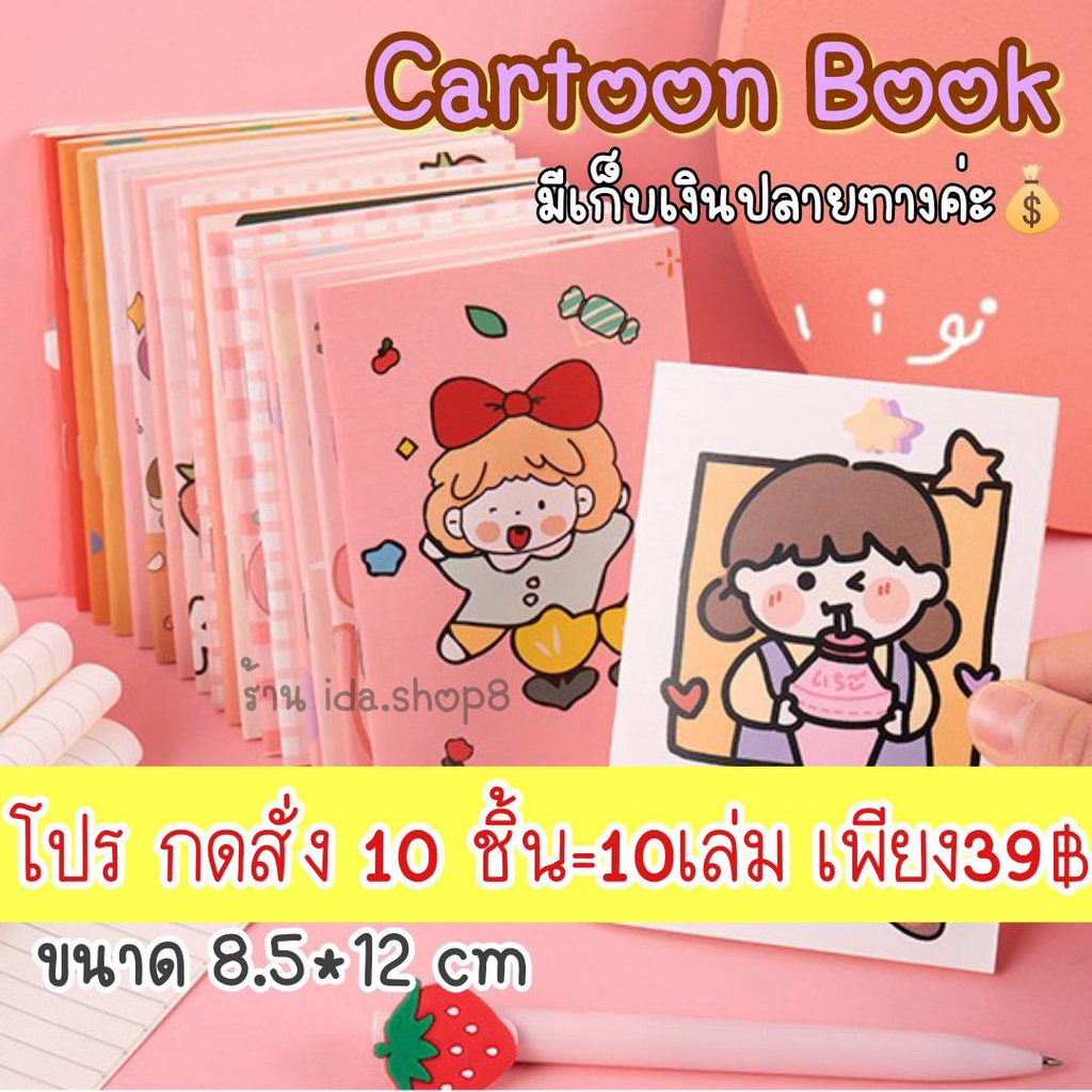10เล่ม39฿.คละลายได้🌈สมุดโน๊ตบันทึกเล่มเล็ก ลายการ์ตูนน่ารัก 𝟏𝟐*𝟖.𝟓𝐜𝐦
