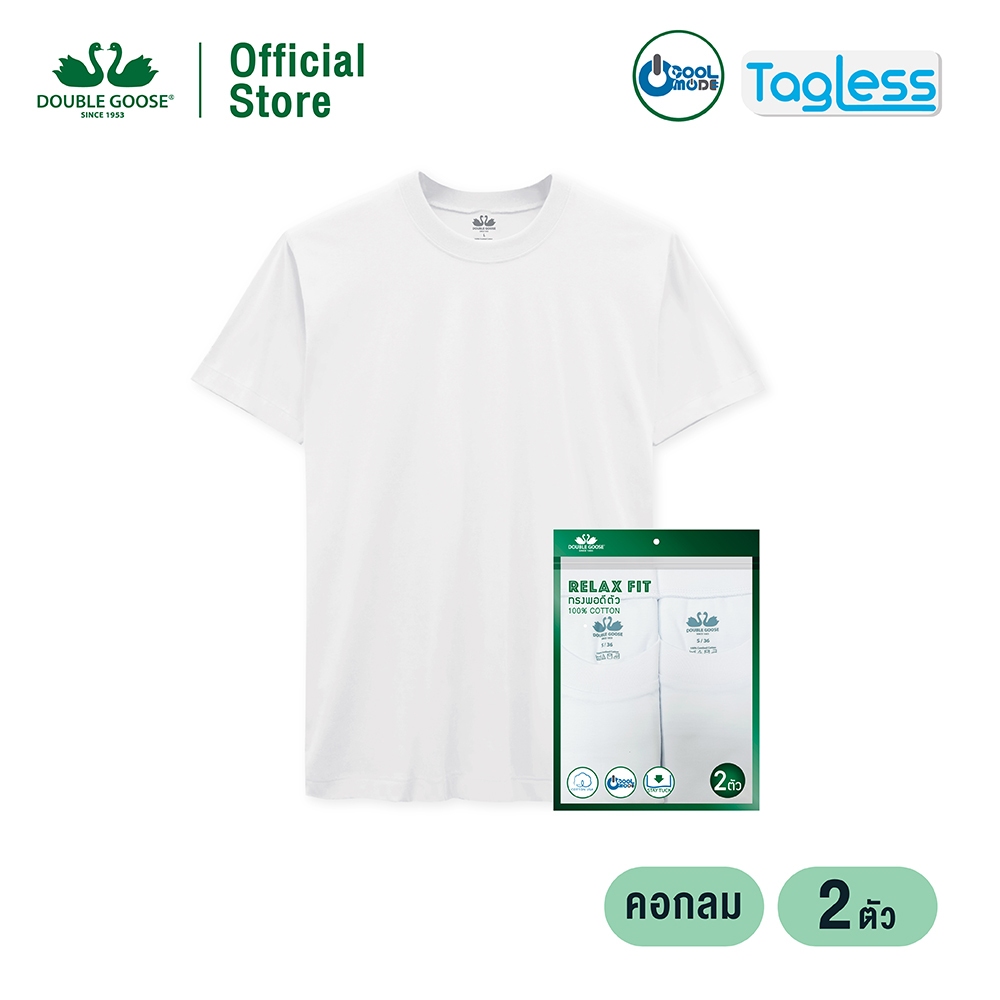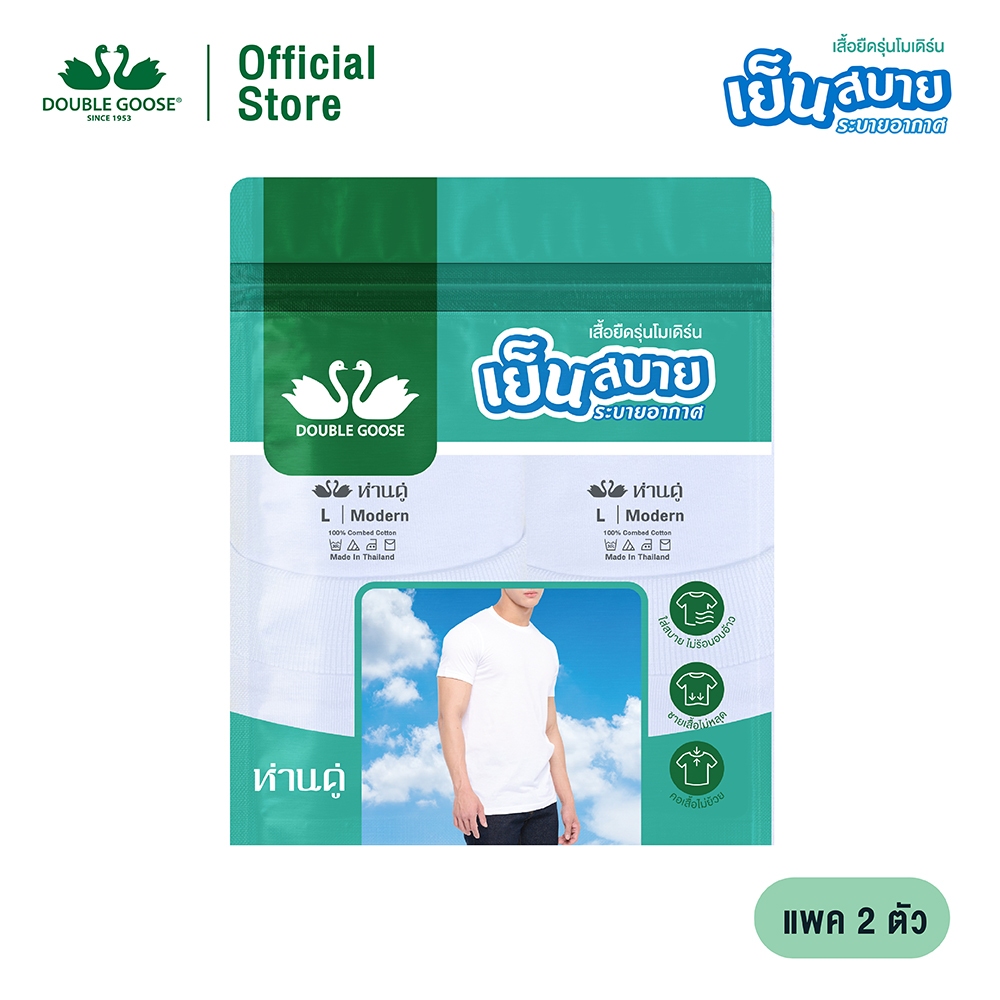 ห่านคู่ เสื้อยืดคอกลม New Modern สีขาว ไร้ตะเข็บข้าง แพค 2 ตัว
