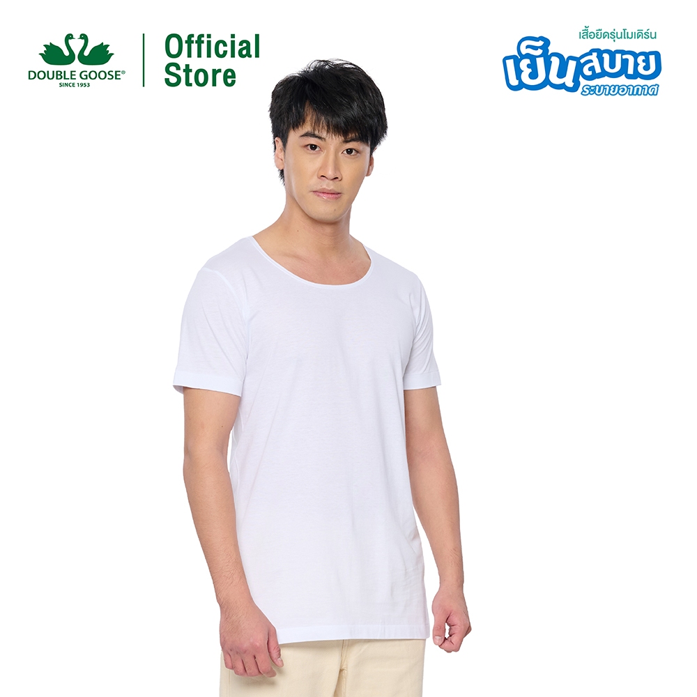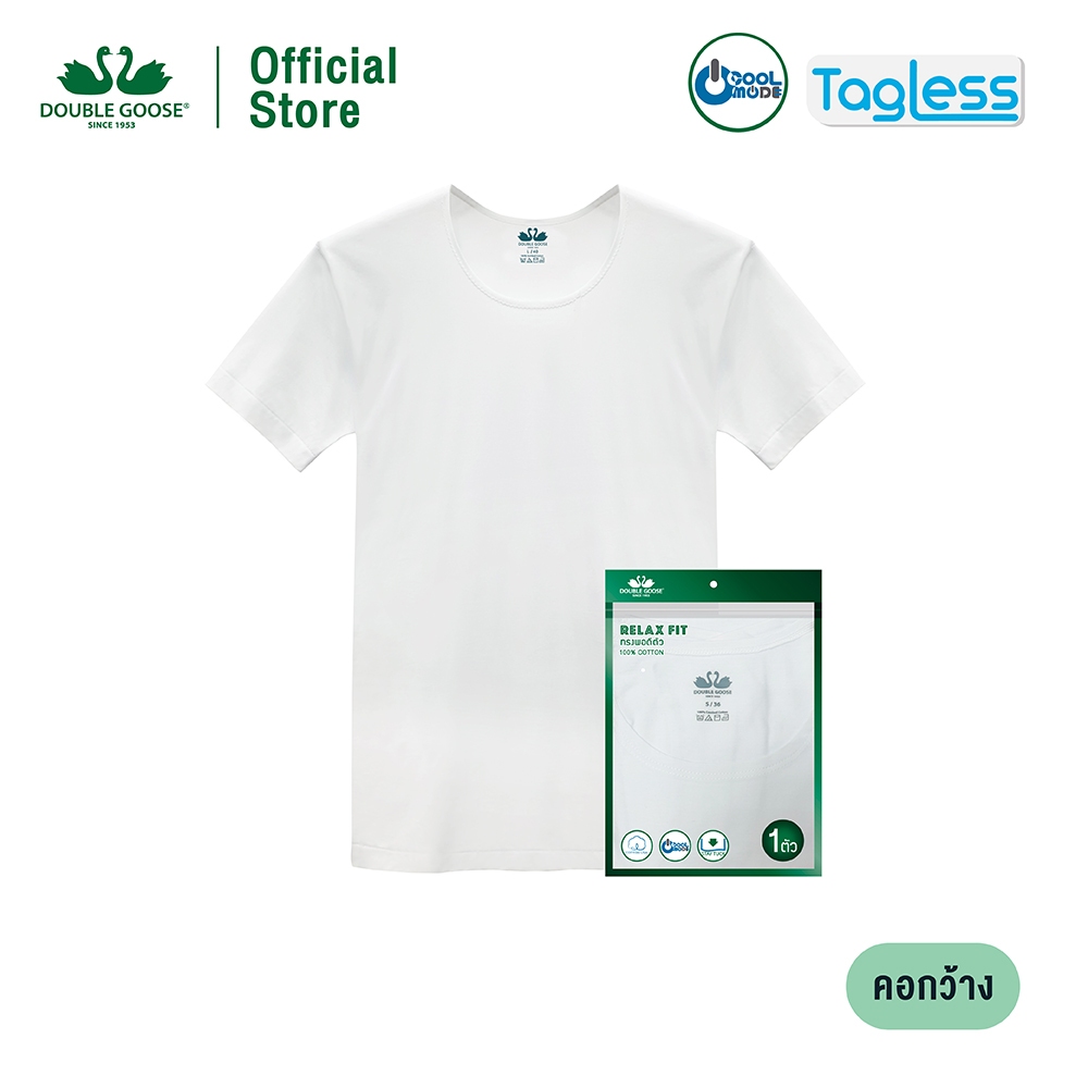 ห่านคู่ เสื้อยืดคอกว้าง New Modern สีขาว ไร้ตะเข็บข้าง แพค 1 ตัว