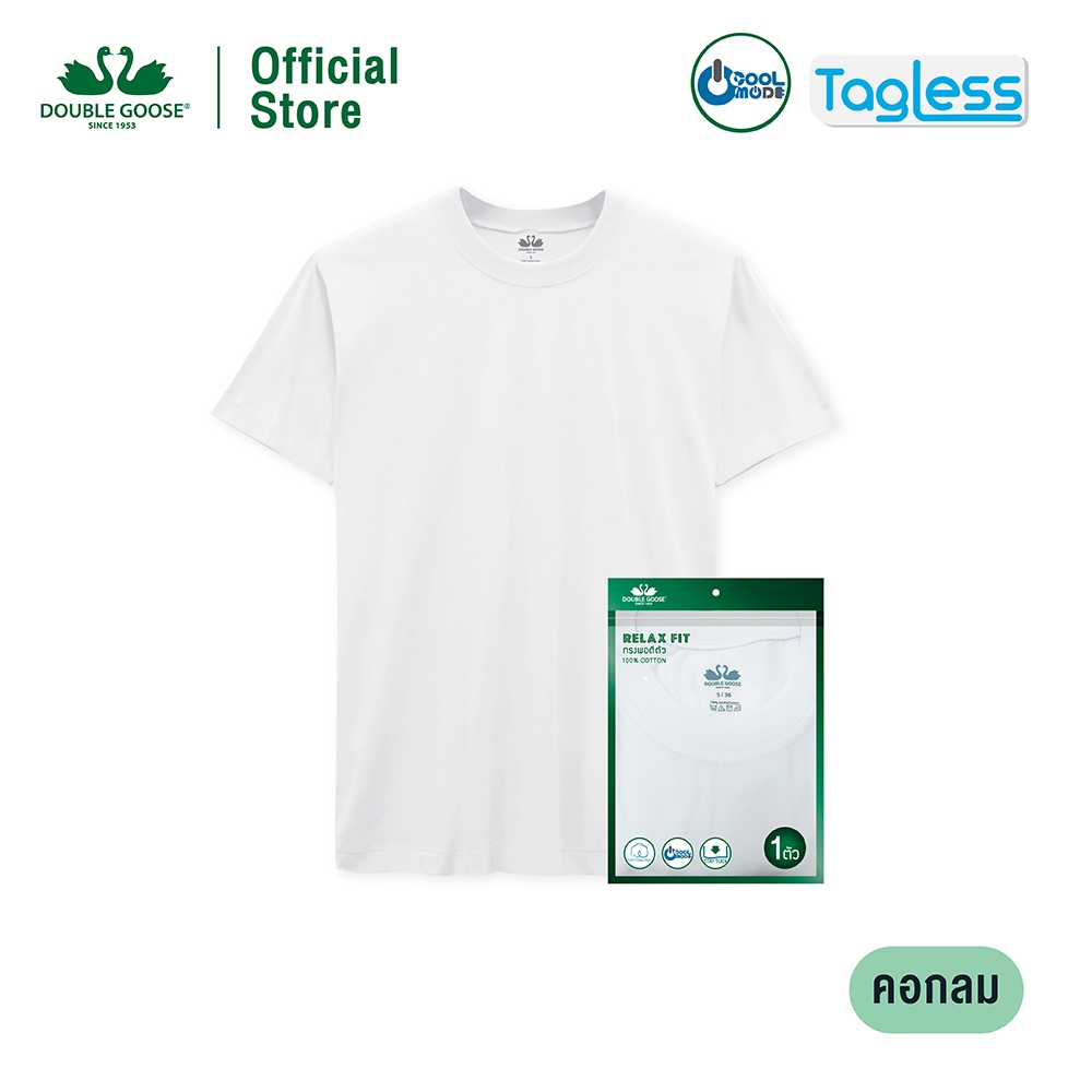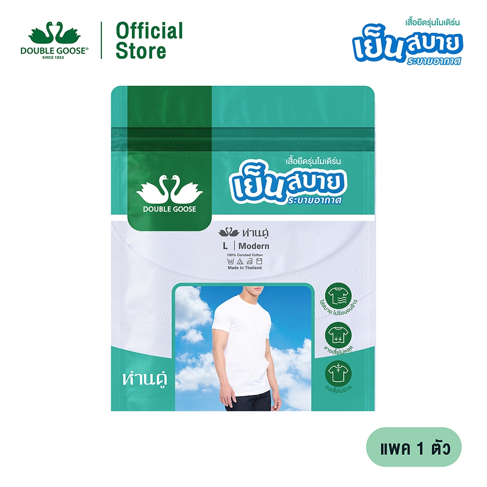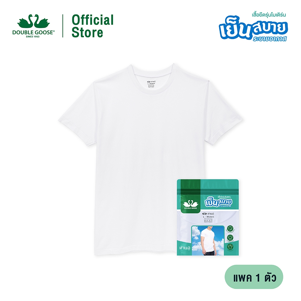 ห่านคู่ เสื้อยืดคอกลม New Modern สีขาว ไร้ตะเข็บข้าง แพค 1 ตัว