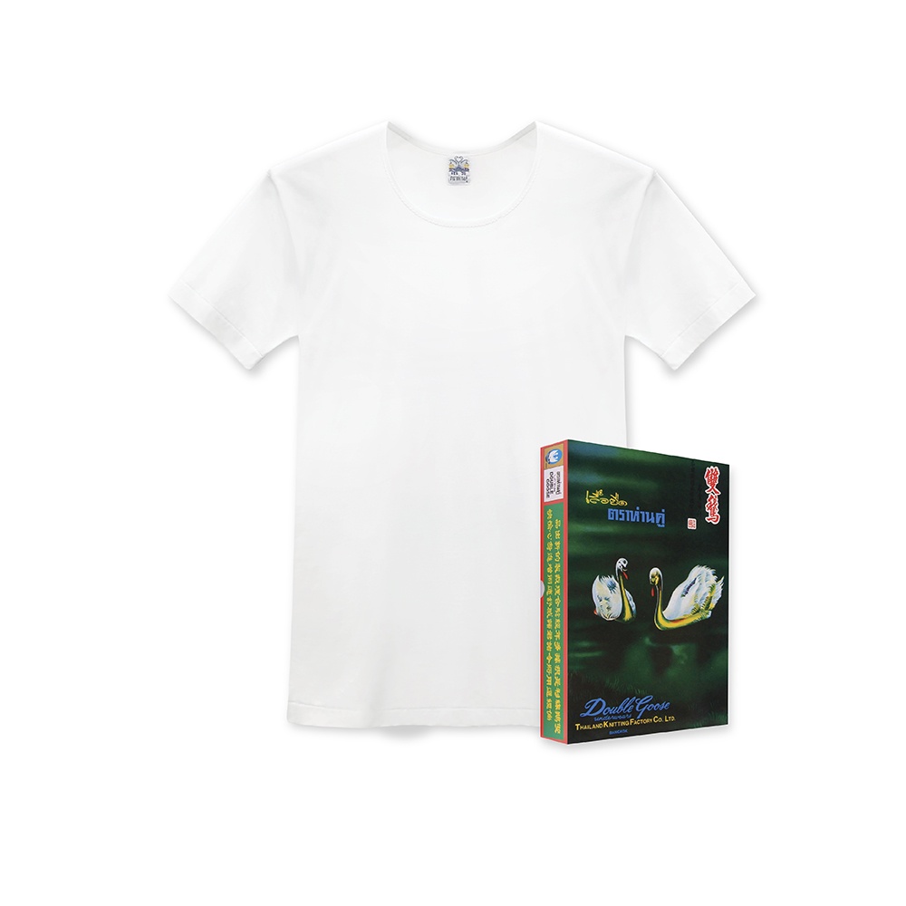 ห่านคู่ เสื้อยืดผู้ชาย คอกว้าง สีขาว รุ่น Classic (แพค 3 ตัว)