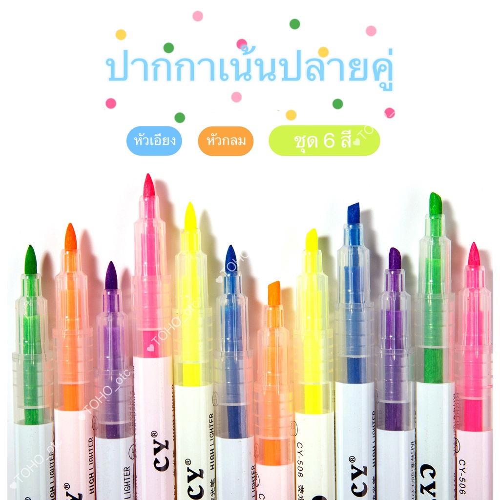 {YGB-6} (ยกแพ็ค6แท่ง) ปากกาไฮไลท์ 6 สี แท่งละ 2 หัว *ราคานี้ได้ 6 แท่ง* ไฮไลท์ ปากกาเน้นข้อความ (Highlighter)