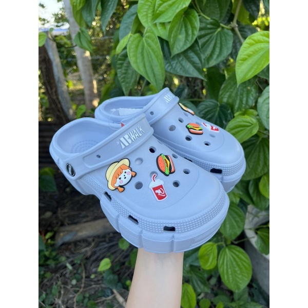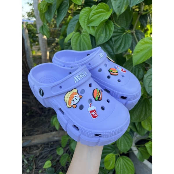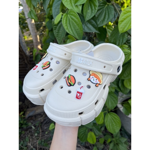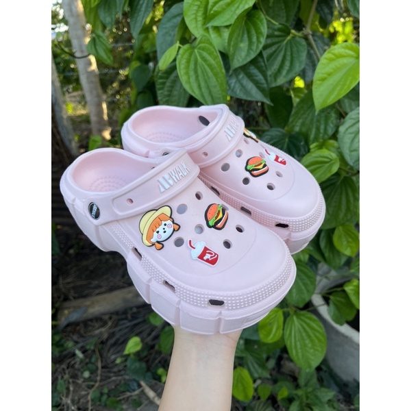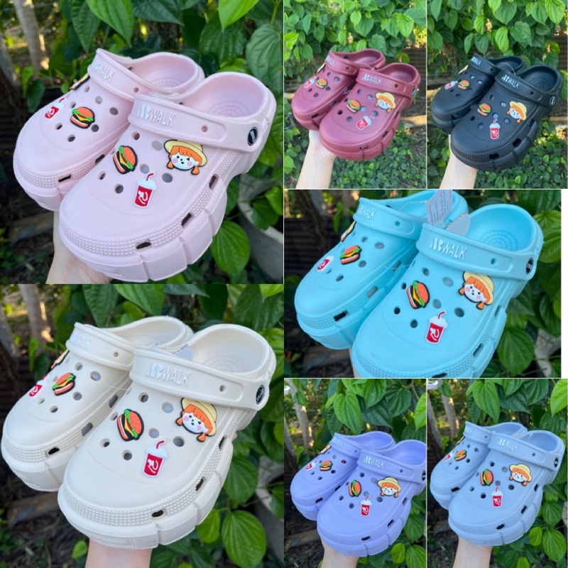 [โปรโมชั่นลูกค้าใหม่ 1 บาท] 💦พร้อมส่ง💦(เผื่อ1-2ไซส์) รองเท้าหัวโต หุ้มหัวเปิดส้น พื้นสูง 6 ซม. สีพาสเทล แบรนด์ AB WALK