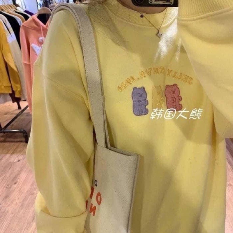 [โปรโมชั่นลูกค้าใหม่ 1 บาท] 💦พร้อมส่ง💦เสื้อกันหนาว เสื้อสเวสเตอร์ สีพาสเทล เสื้อแขนยาวเจ้าหมีสีพาสเทล🧸งานปักรูปหมี