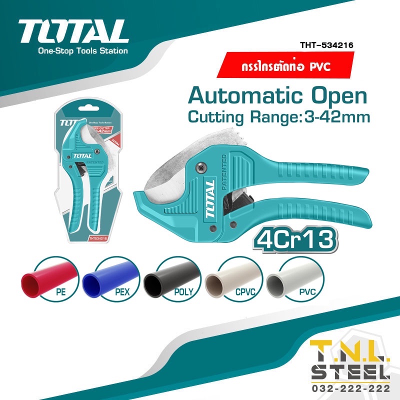 กรรไกรตัดท่อ PVC 193mm ( THT53425 / THT534216 / THT53422 ) ตัดได้ 03-42 mm TOTAL ( PVC Pipe Cutter )