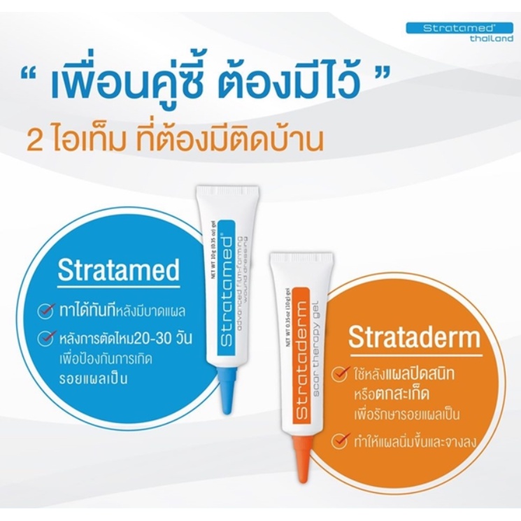 Strataderm gel / Stratamed / Stratacel ซิลิโคน เจลทา รักษา แผลสด แผลเป็นนูน ศัลยกรรม หลุมสิว เลเซอร์