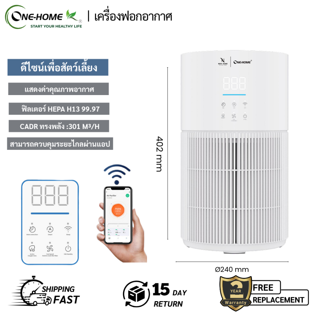 ONEHOME Air Purifier เครื่องฟอกอากาศ ฟอกอากาศ HEPAฆ่าเชื้อและกำจัดควันบุหรี่มือสองและดูดซับสารก่อภูมิแพ้PM2.5 เครื่องฟอก
