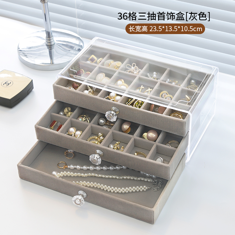 สินค้าพร้อมส่ง กล่องเก็บเครื่องประดับที่มีฝาปิดต่างหูกล่องเก็บต่างหูที่หนีบหูกันฝุ่นเครื่องประดับต่างหูไม้หู3ชั้น 2048
