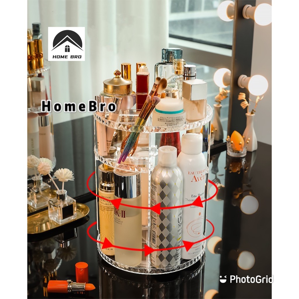 🔥HOME BRO🔥 สินค้าพร้อมส่ง กล่องเก็บเครื่องสำอางอะคริลิคชั้นวางเครื่องสำอาง’หมุนได้360°. 1017