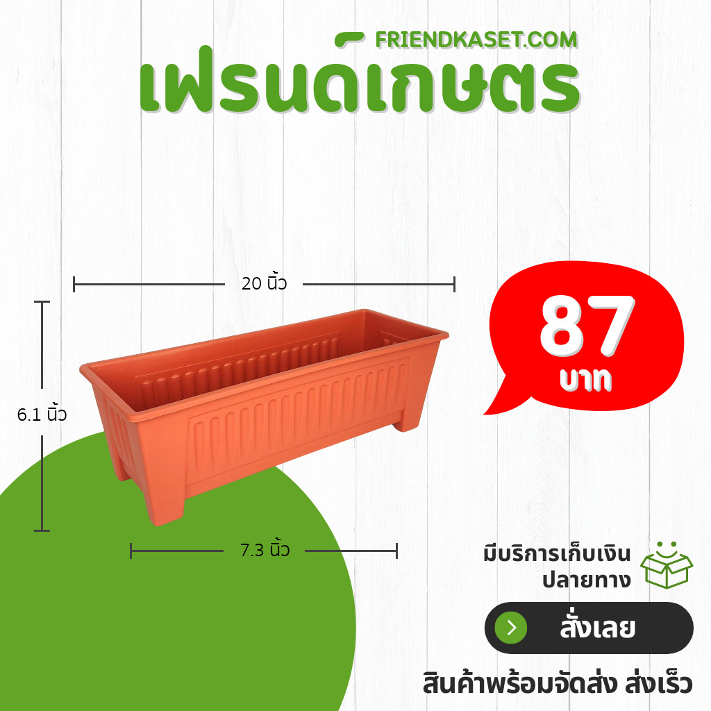 กระถาง กระถางต้นไม้ กระถางรางยาว ขนาด เบอร์ 18 19 20 นิ้ว สีขาว สีอิฐ Bundle 5 ใบ ชิ้น อัน